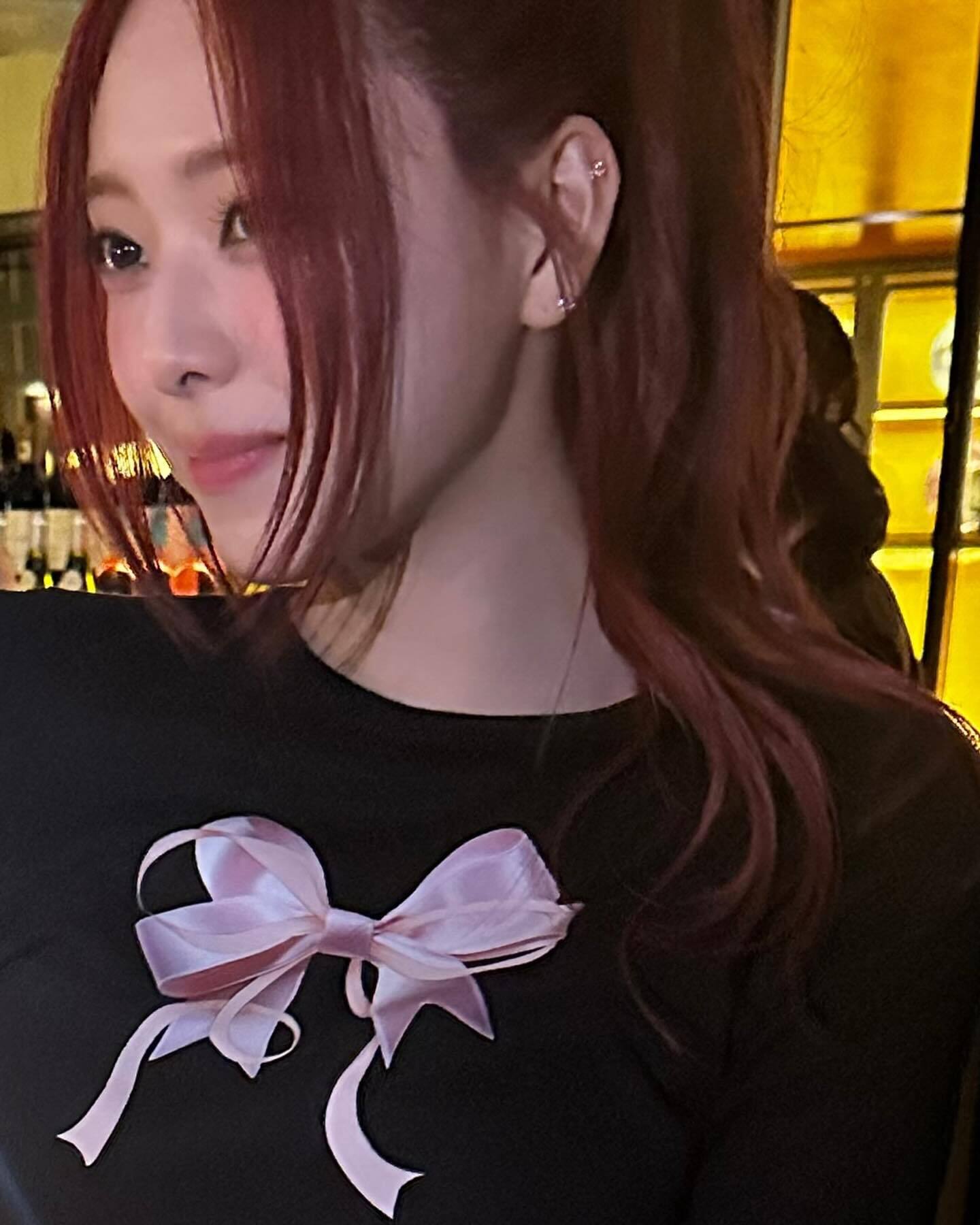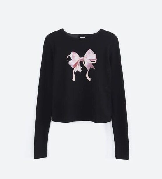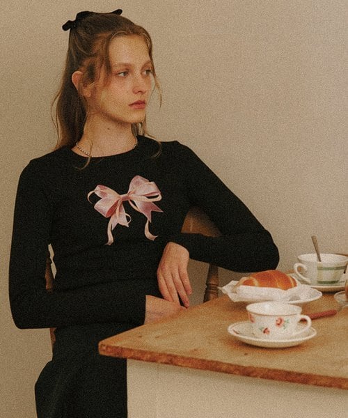 ★ITZY ユナ / AESPA ニンニン 着用!!【RONRON】DOUBLE RIBBON SLIM CROP LONG SLEEVE BLACK
