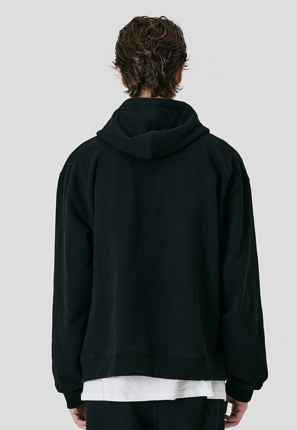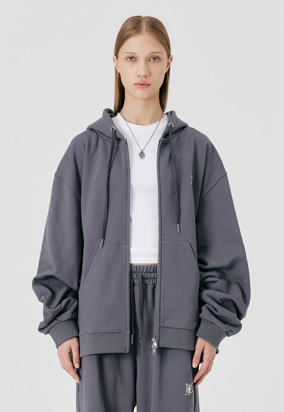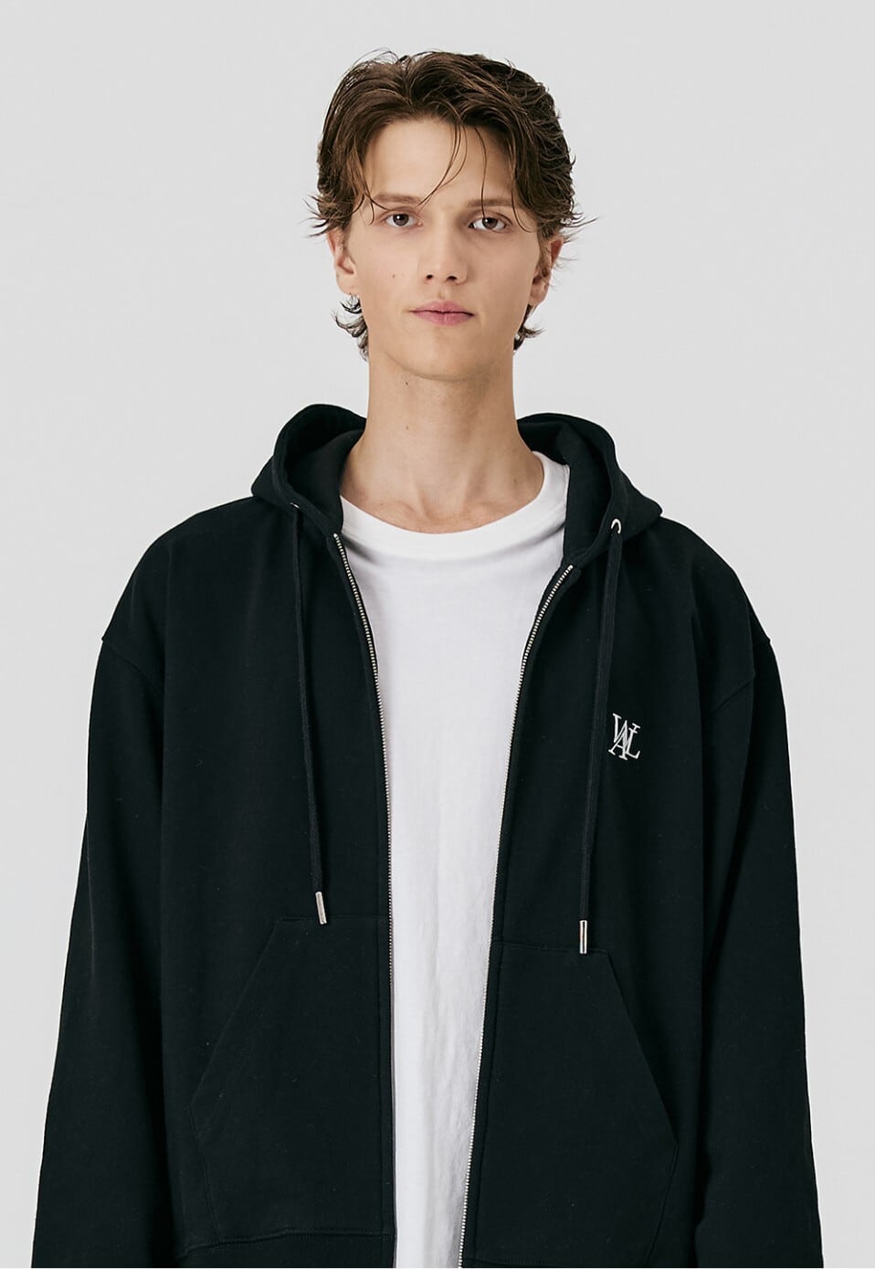 ゆったりとしたベーシックシルエットのウアロン シグネチャージップアップフード