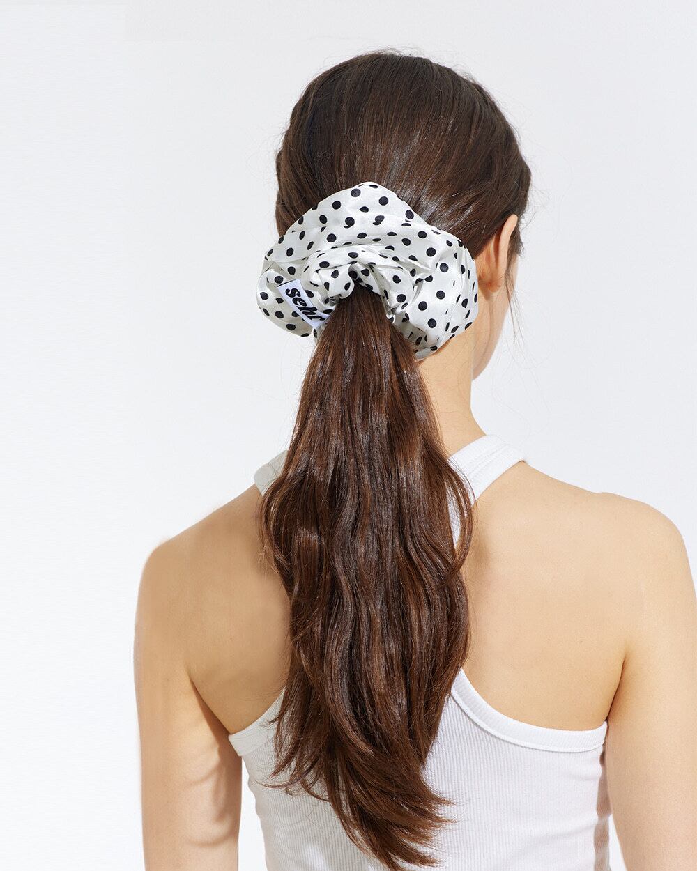★ハンソヒ 着用!!【SEHR】 Dot-Dot Pleats Scrunchie (White)