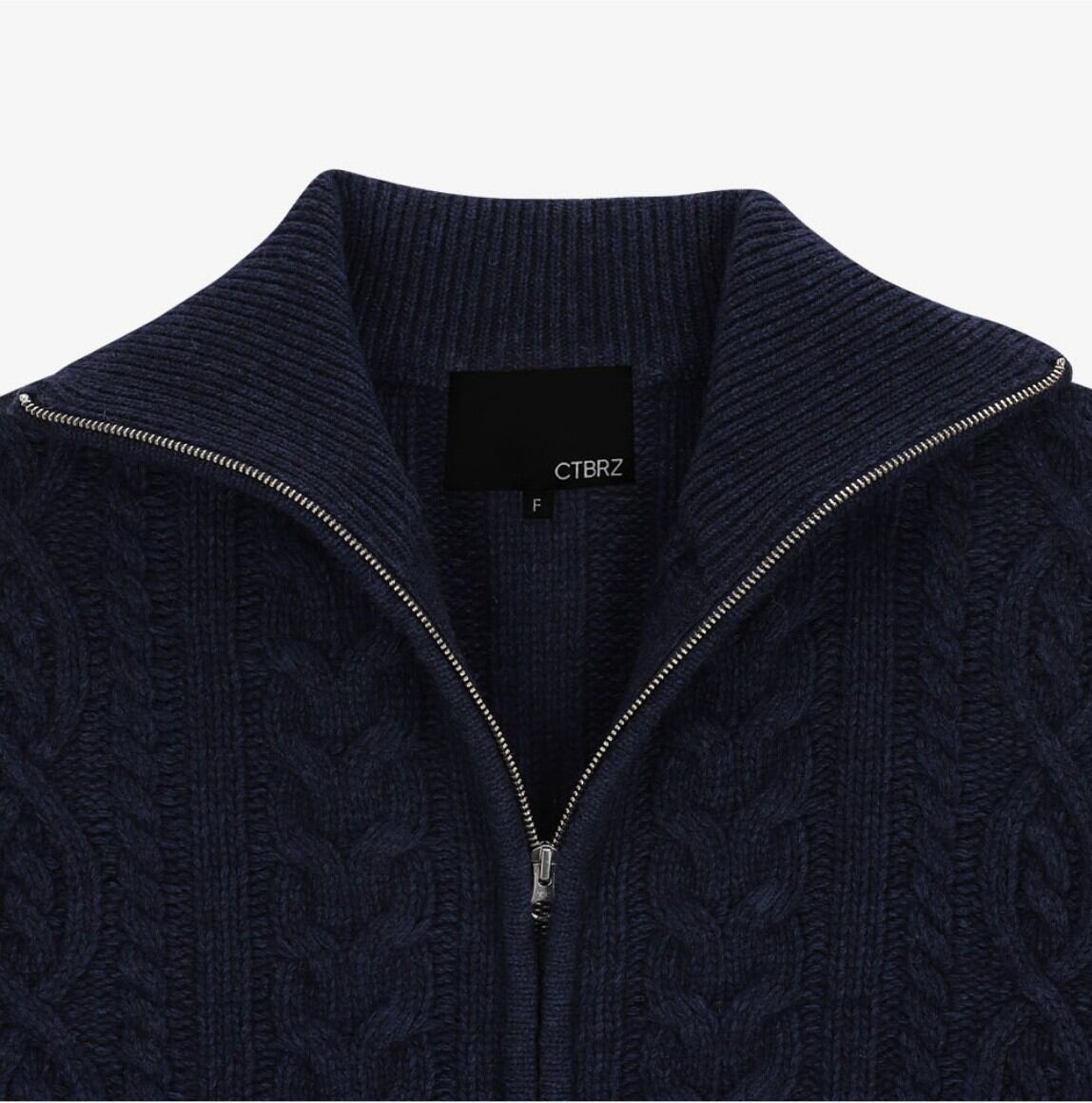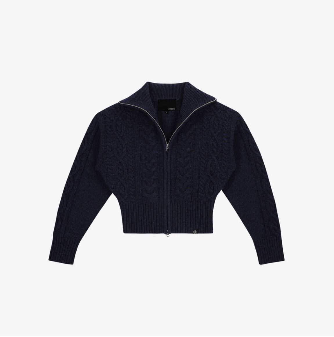 ★AESPA ウィンター 着用!!【CITY BREEZE】Cable Knit Zip-Up Cardigan NAVY