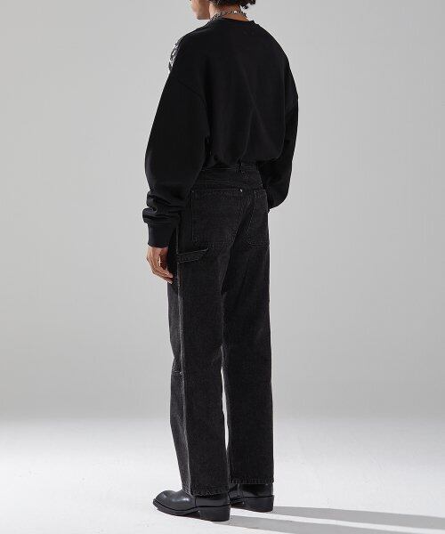 - カーペンタージーンズディテール要素を応用してデザインされたホワイトトーンウォッシングカーペンターワイドジーンズ。