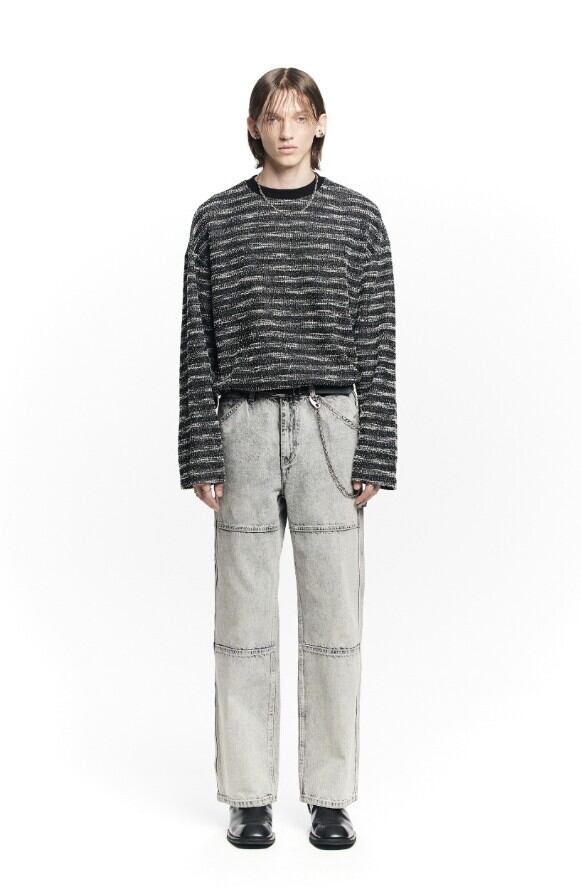 - ヘビーなストーンウォッシュを通じてブリーチでホワイトグレーカラーを演出。