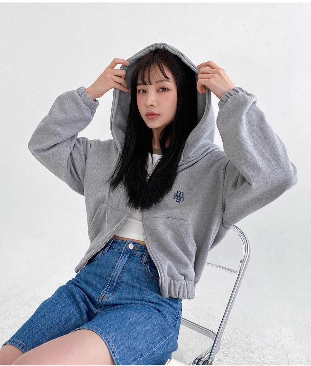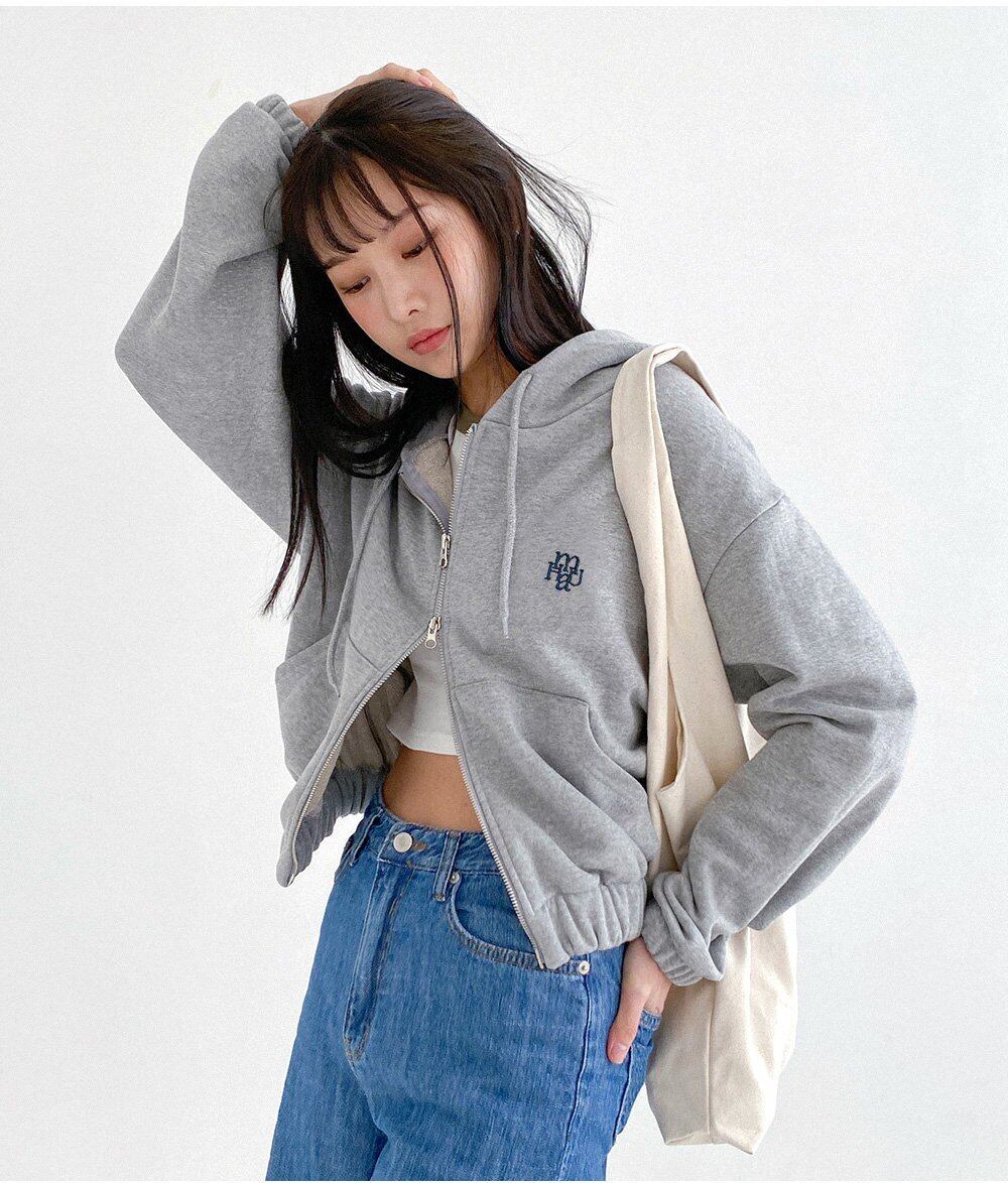 ★【muahmuah】logo stitch Two Way hoodie - 4COLOR