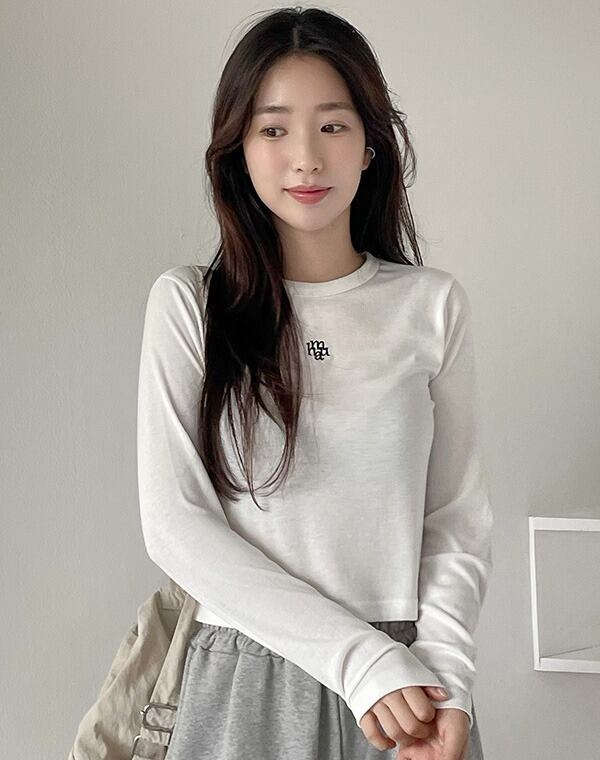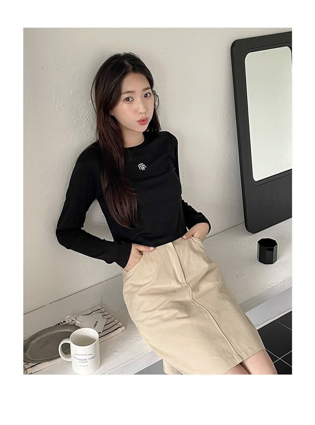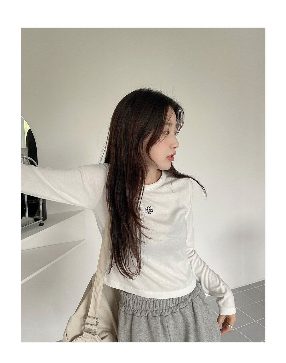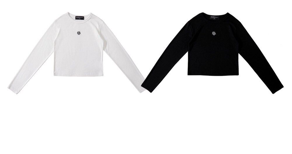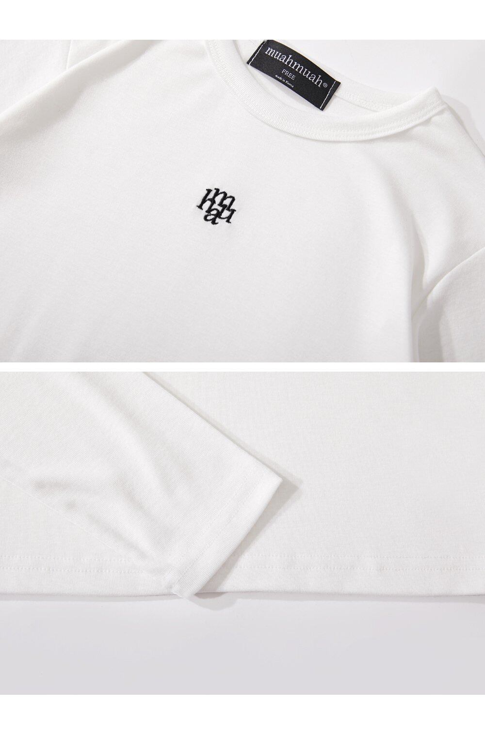 SIGNATURE CROP HALF T-SHIRT 全体的にスリムな身幅のクロップ丈で 単独でもポイントを与えるのに良いTシャツです。 綿とスパンが混用された生地を使用し、 しっかりしているが伸縮性が作用する感じを与え、 フロントの中心にシグネチャー刺繍をデザインしました。