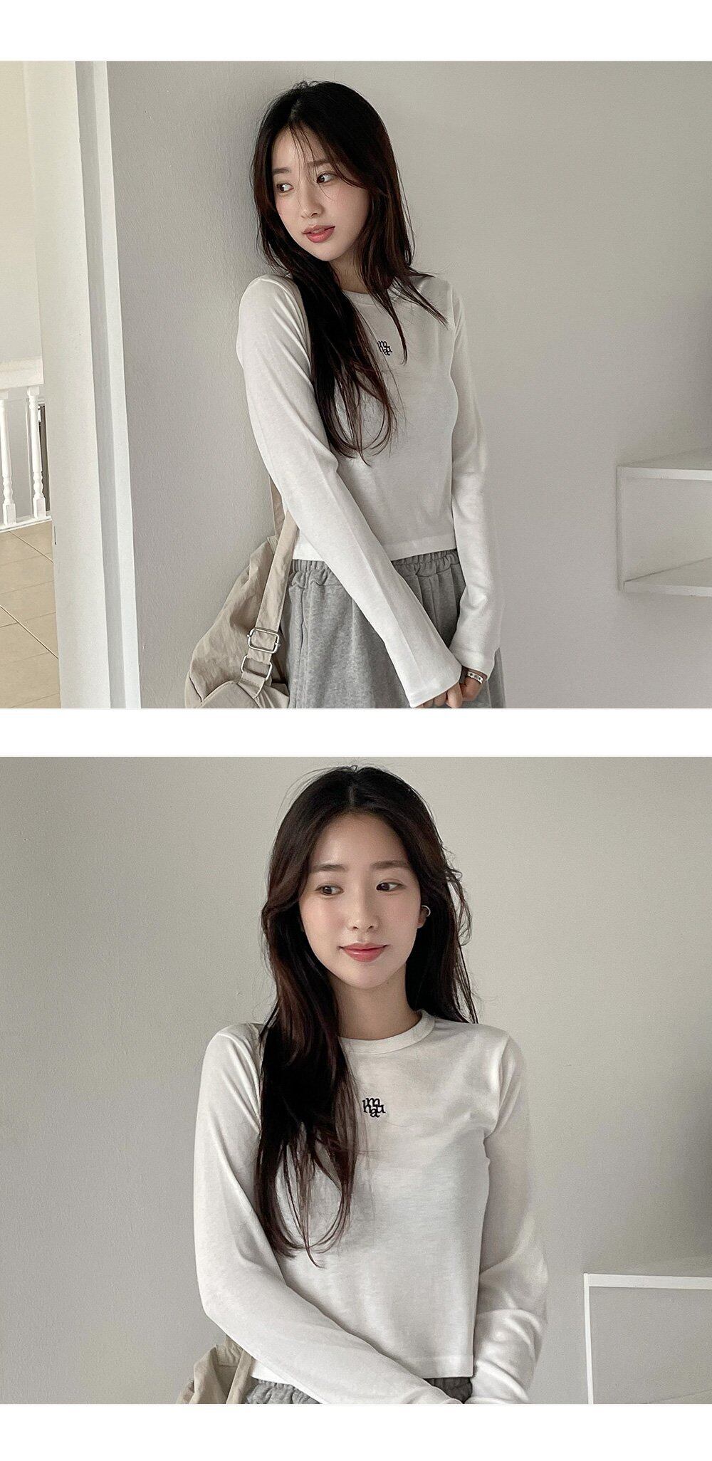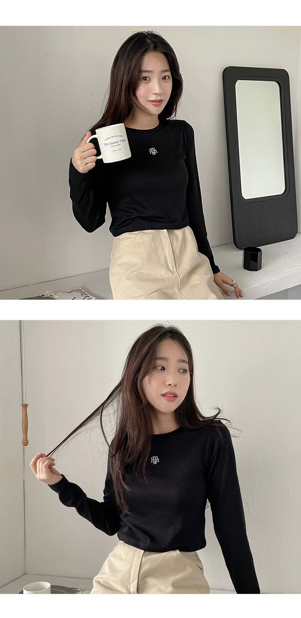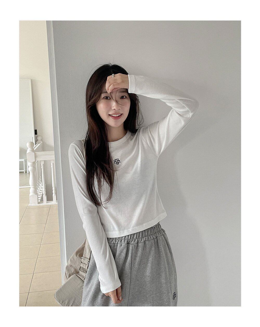 SIGNATURE CROP HALF T-SHIRT 全体的にスリムな身幅のクロップ丈で 単独でもポイントを与えるのに良いTシャツです。 綿とスパンが混用された生地を使用し、 しっかりしているが伸縮性が作用する感じを与え、 フロントの中心にシグネチャー刺繍をデザインしました。