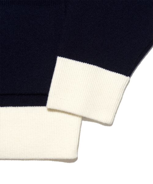 軽くて暖かい素材のウールを含む配色Vネックカーディガンです。