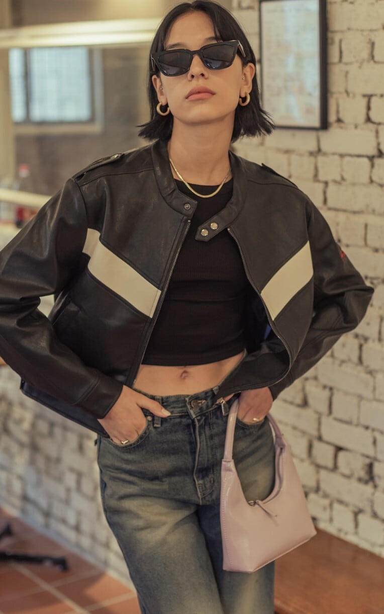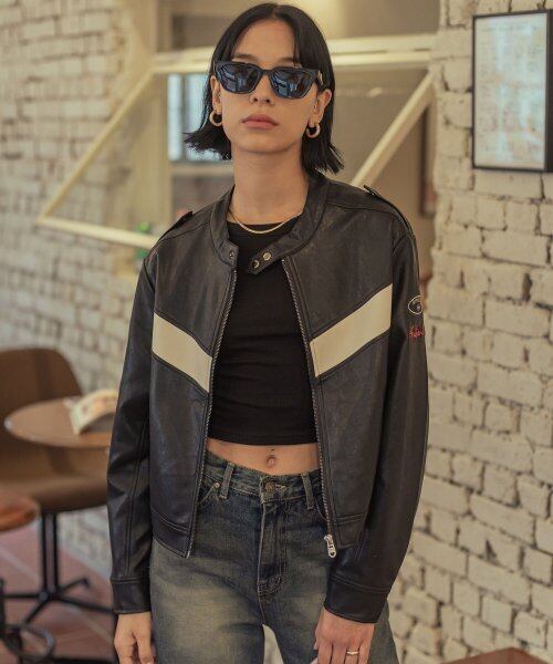 ★【BITTER CELLS】Eco Leather Lacing Jacket-Black