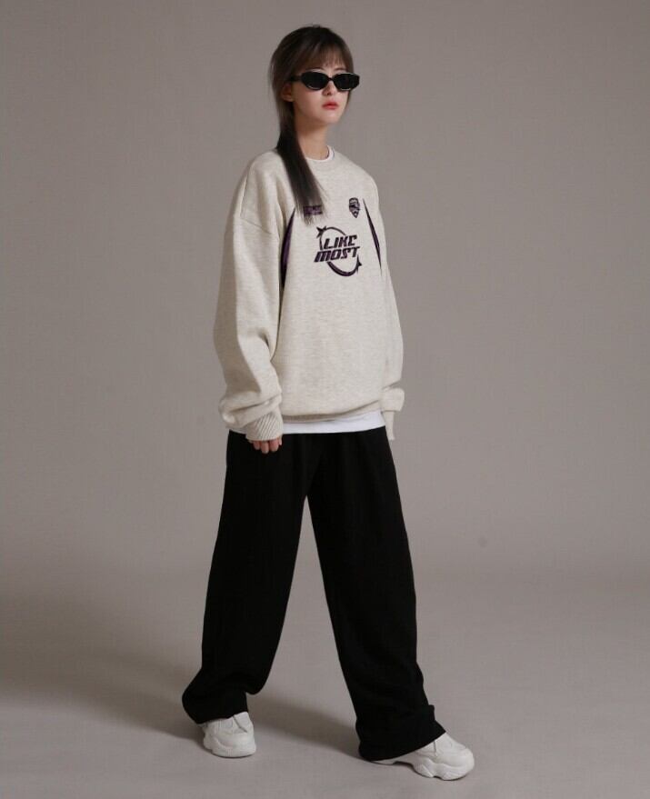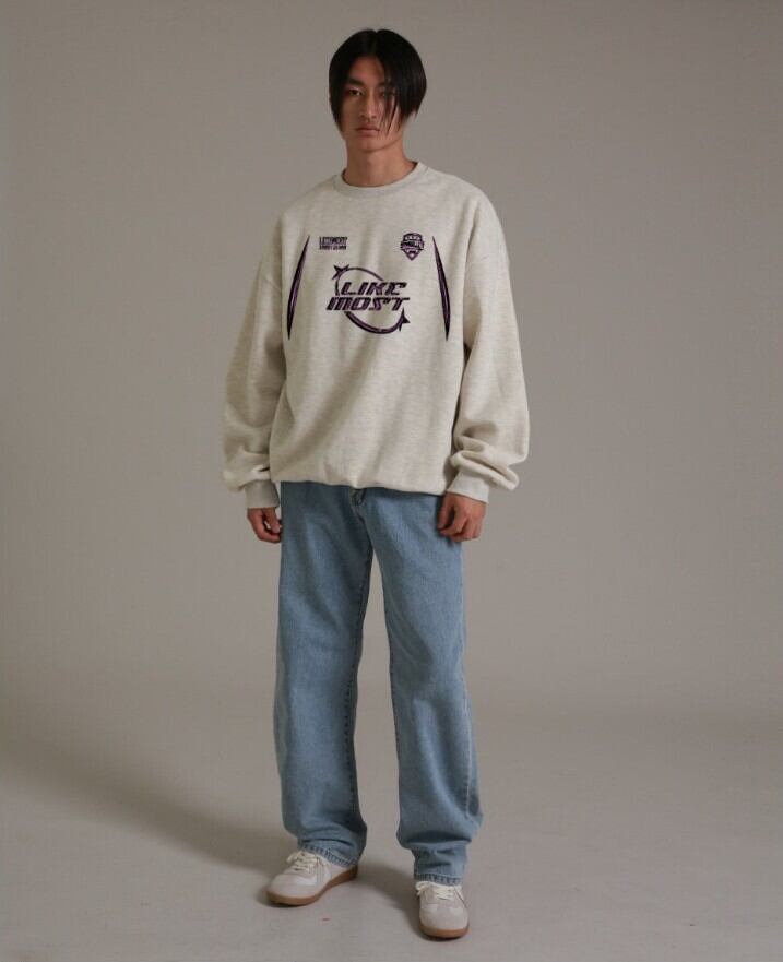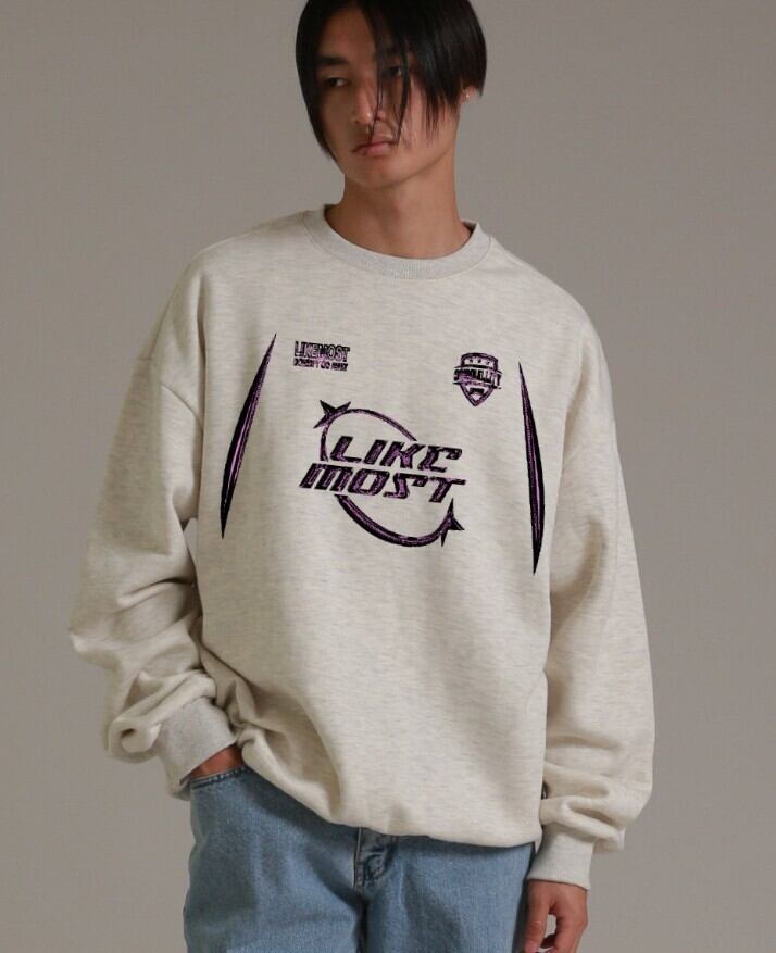 ★【LIKE THE MOST】LIKEMOST TWOSTAR OVER PIT SWEATSHIRT OATMEAL