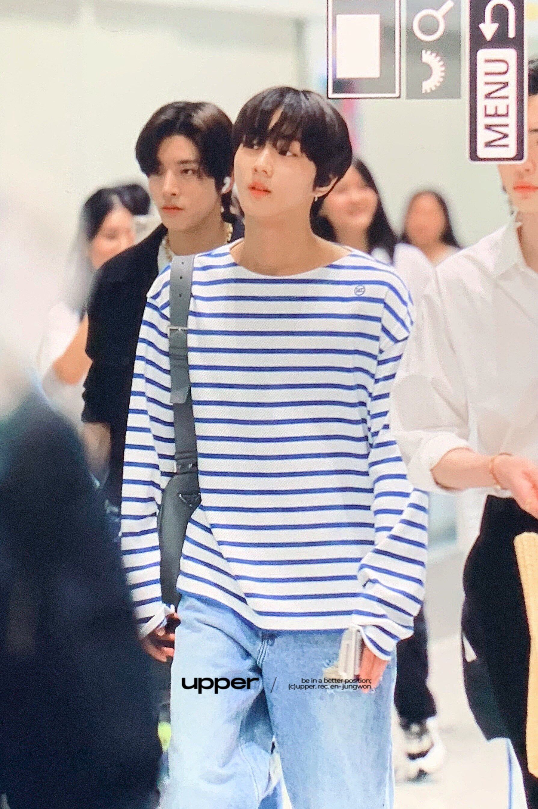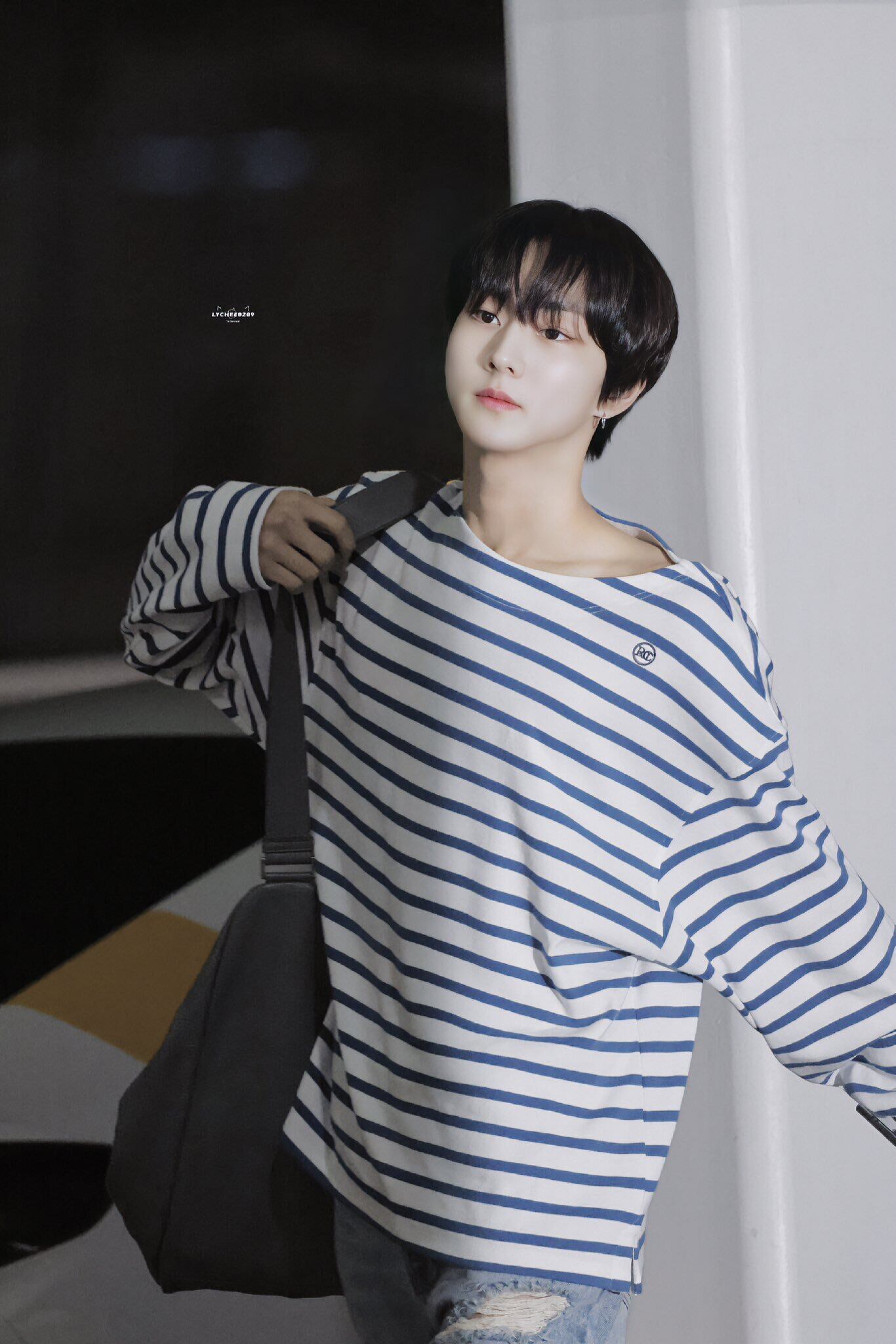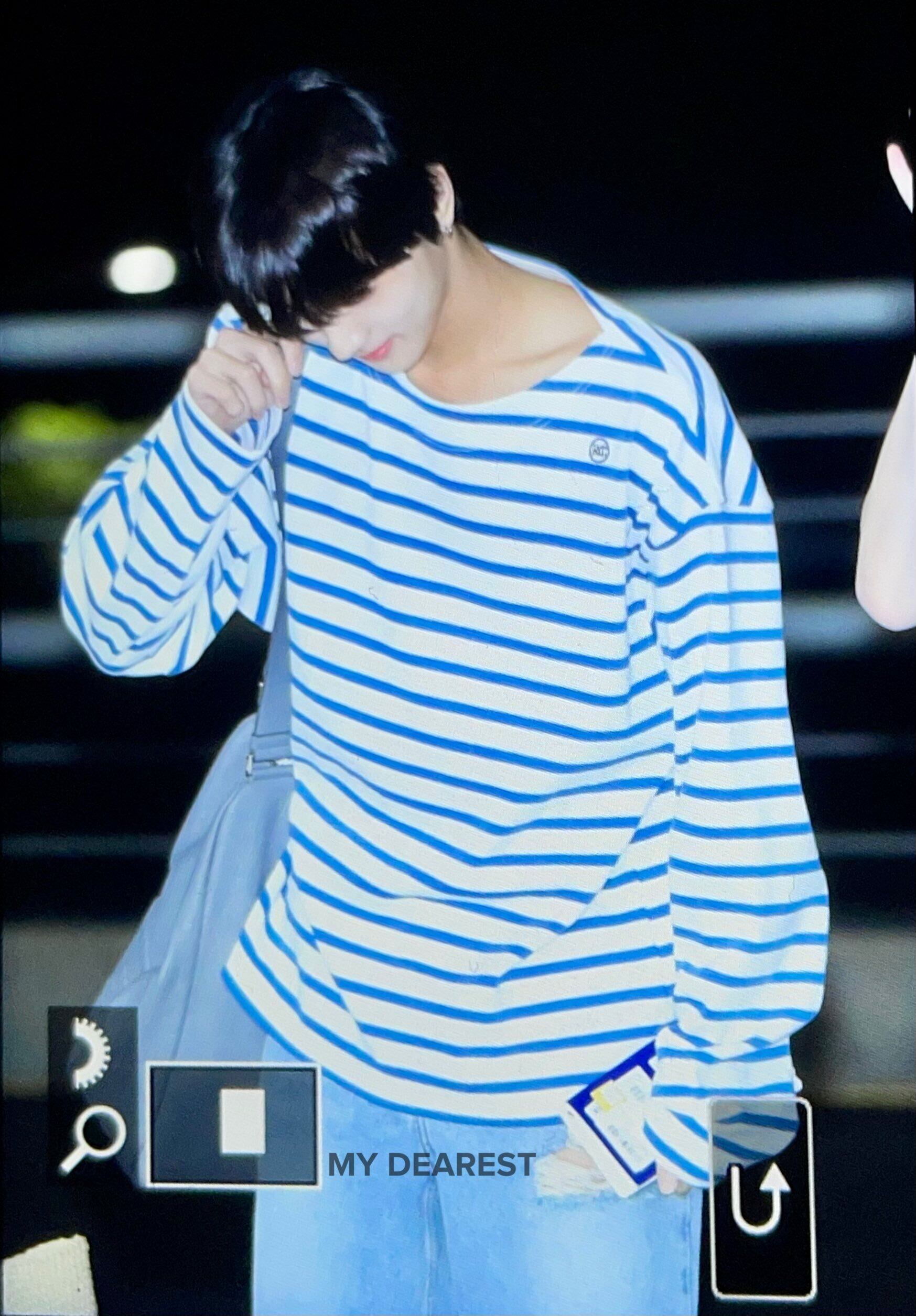 ★ENHYPEN ジョンウォン 着用!!【RECTO】 MONACO STRIPED OVER FIT T-SHIRT (DUSTY BLUE)