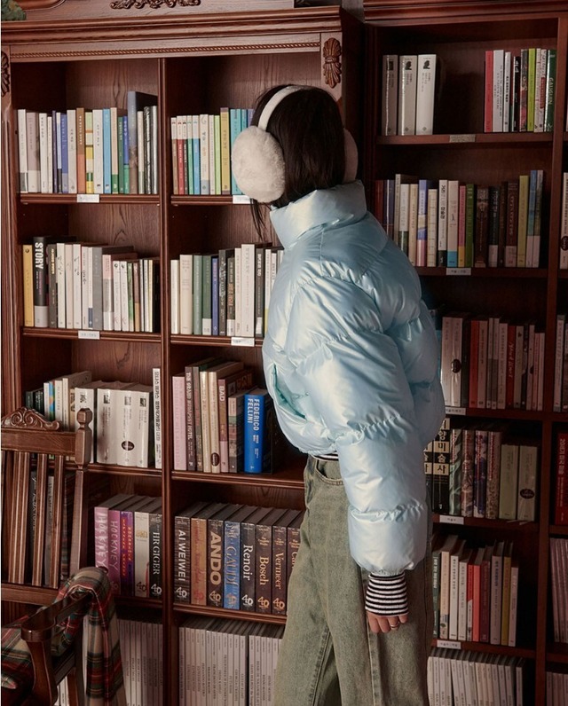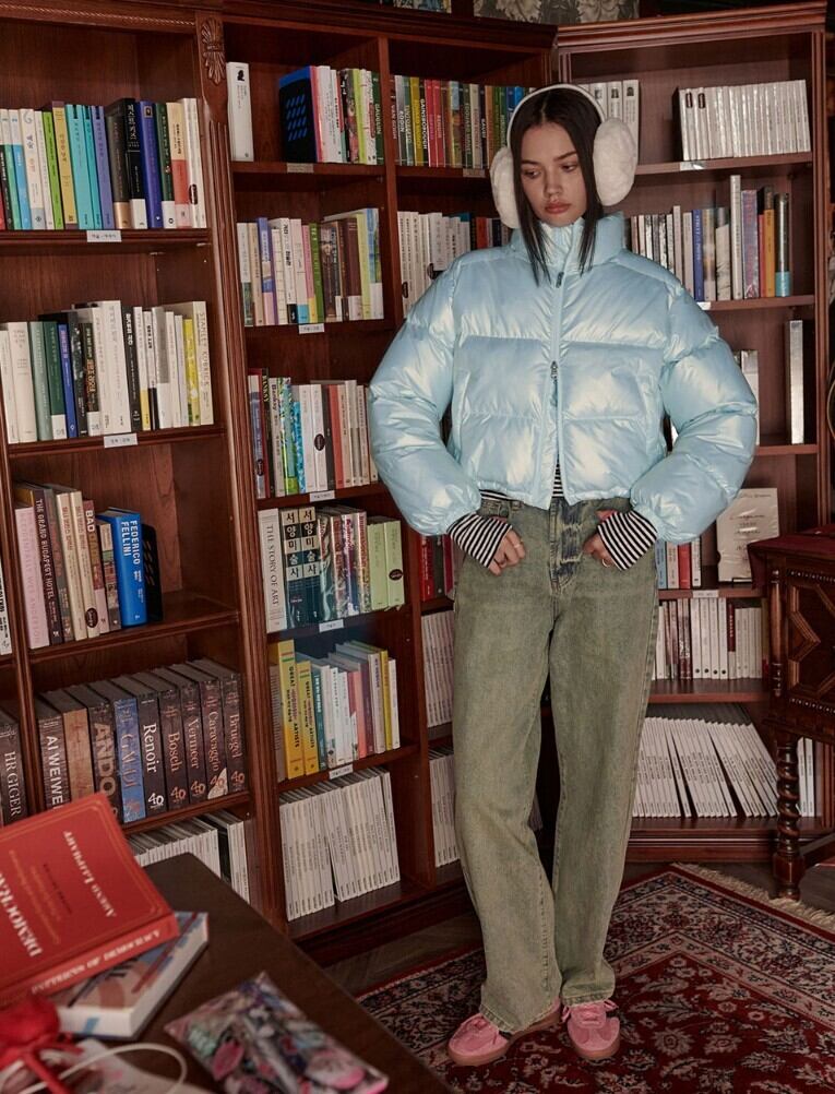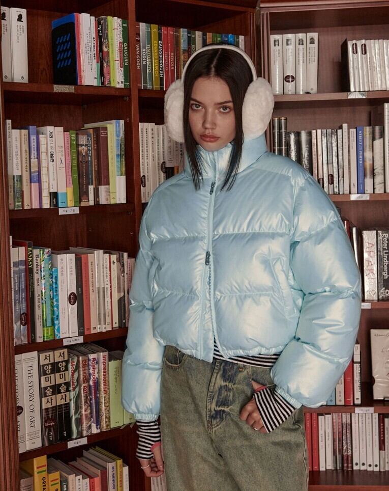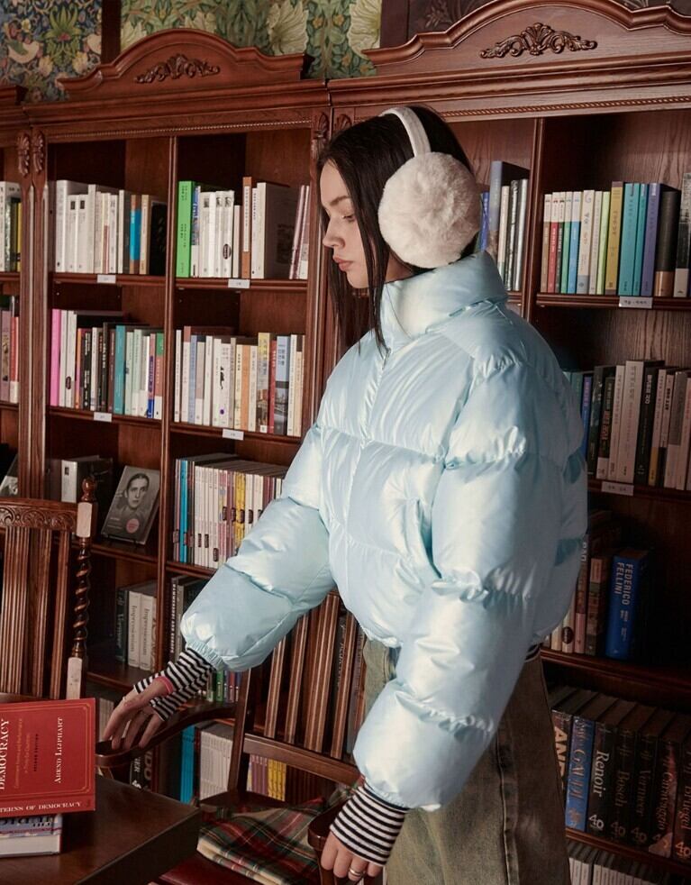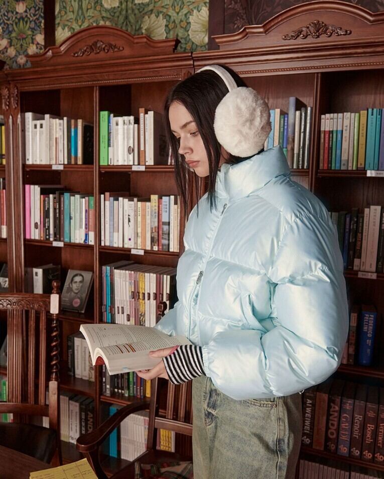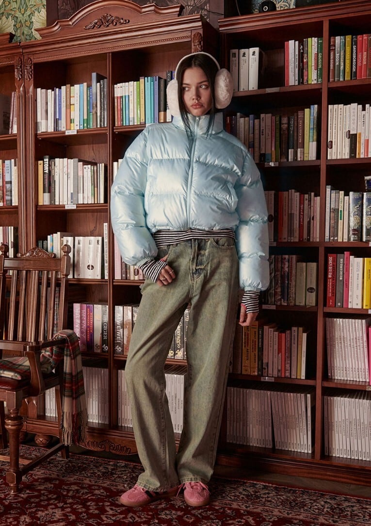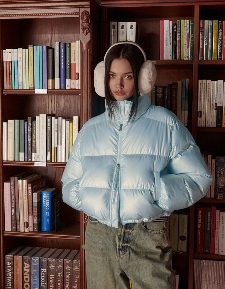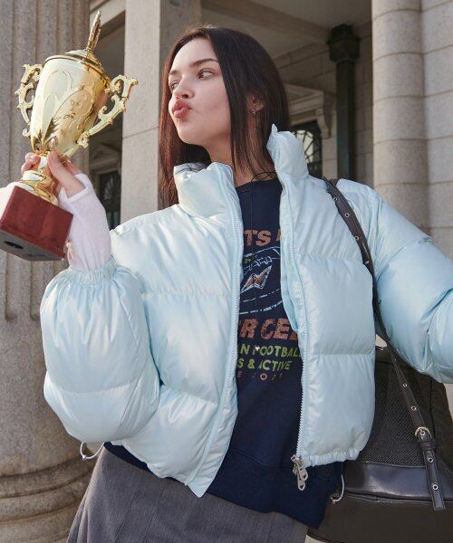 ★【BITTER CELLS】GLOSSY CROP PUFFER JACKET- L/Blue