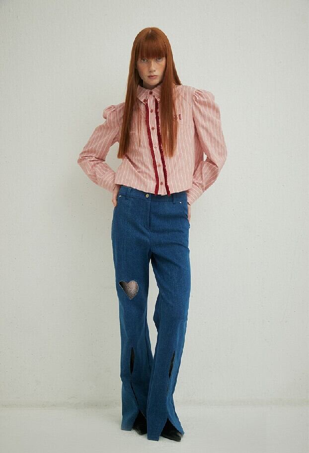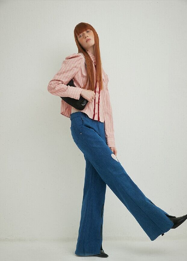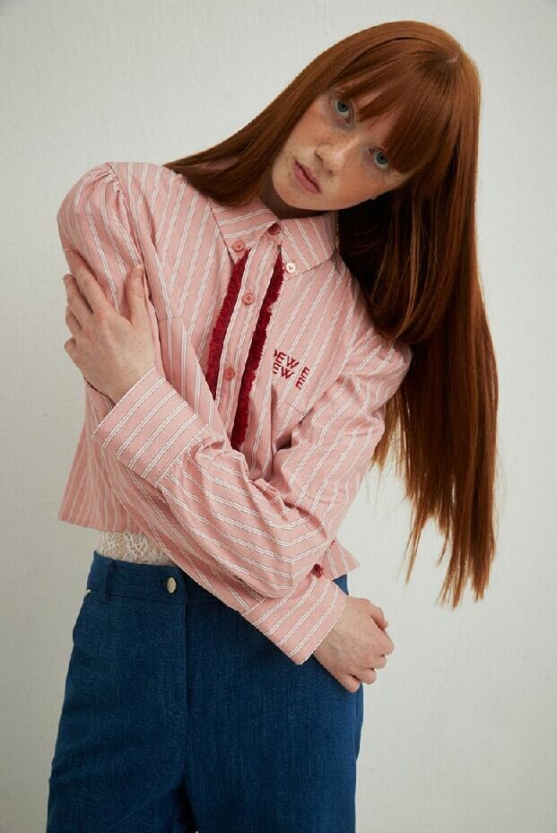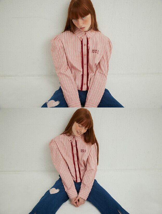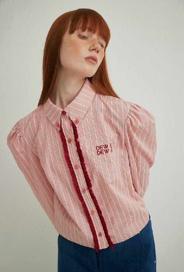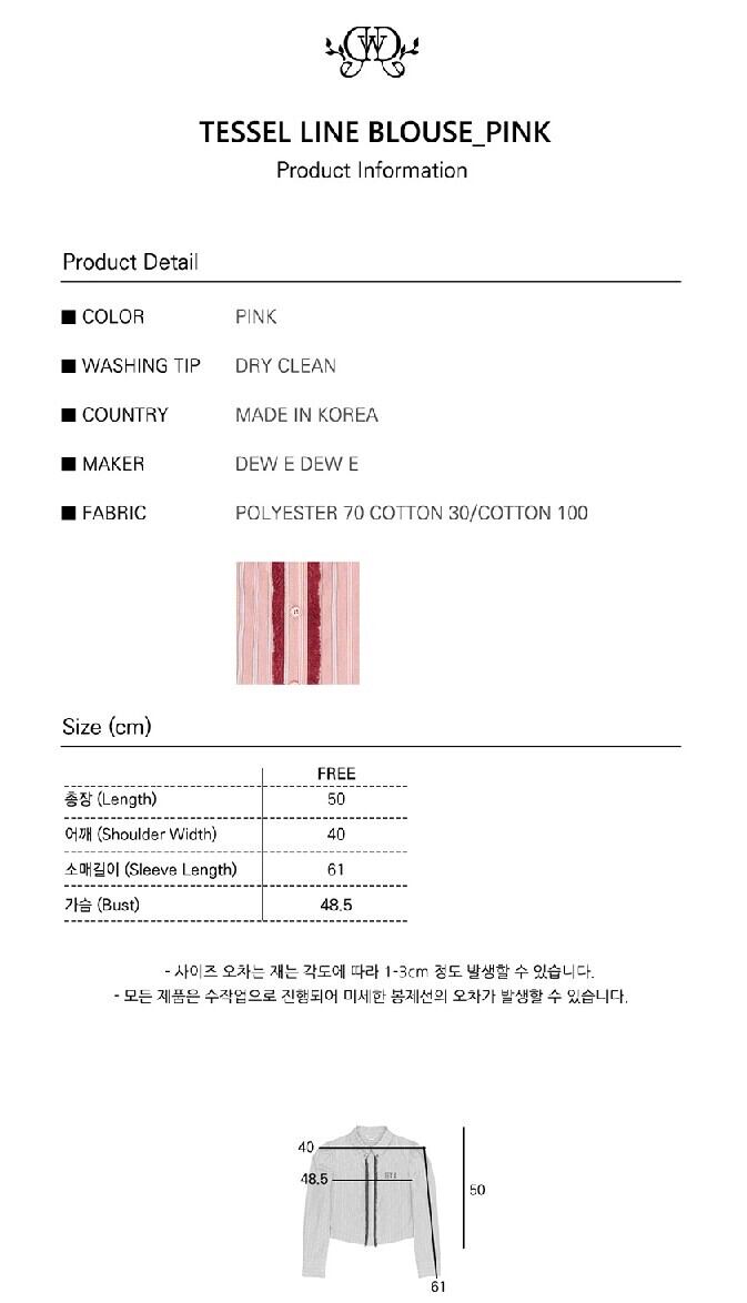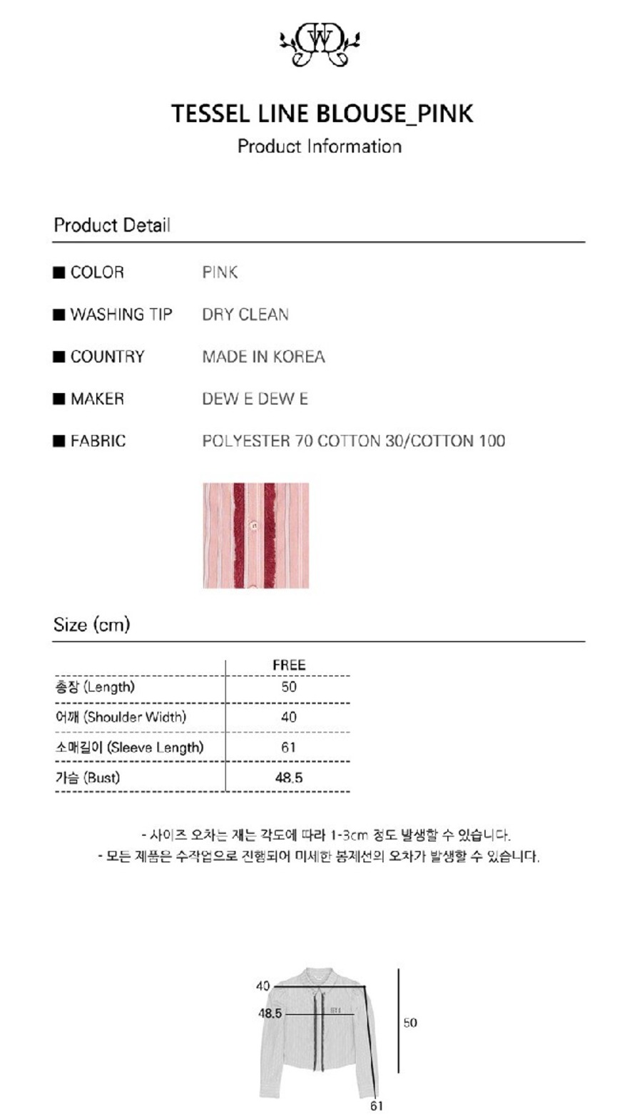 ★IVE ウォニョン 着用!!【DEW E DEW E】TESSEL LINE BLOUSE PINK