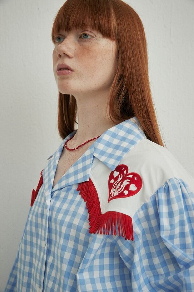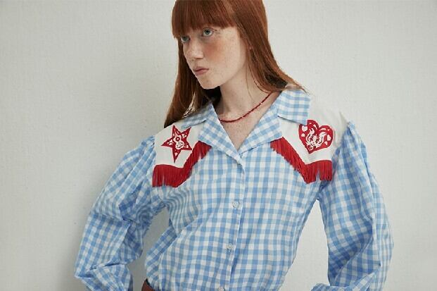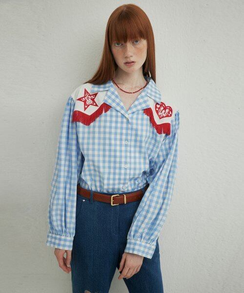 シーズンテーマである"カウボーイ"のムードを盛り込み、タッセルが付いているユニークシャツです。