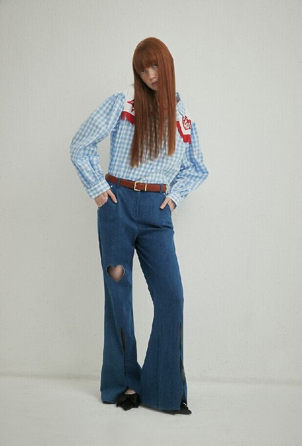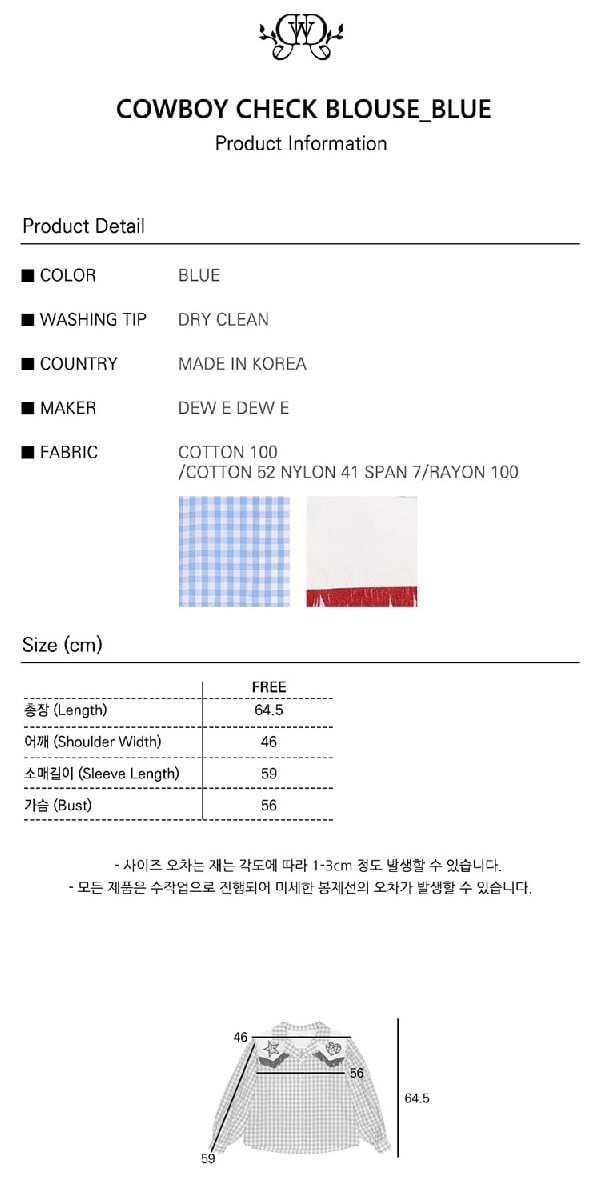 ★IVE リズ 着用!!【DEW E DEW E】COWBOY CHECK BLOUSE BLUE