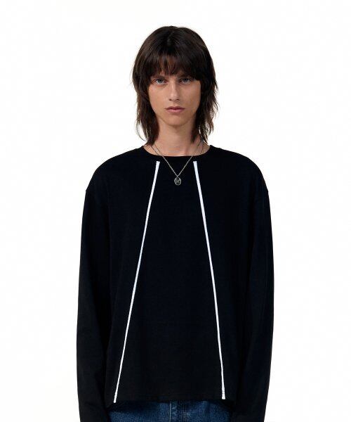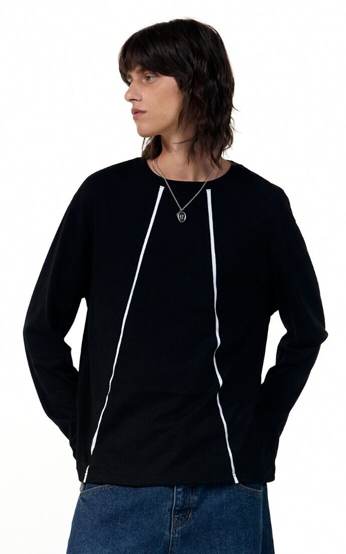 ブラック&ホワイトスリット配色ディテールのルーズフィットTシャツ