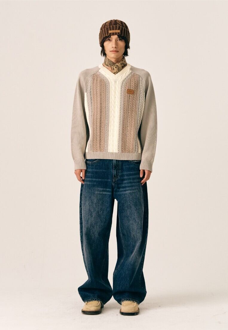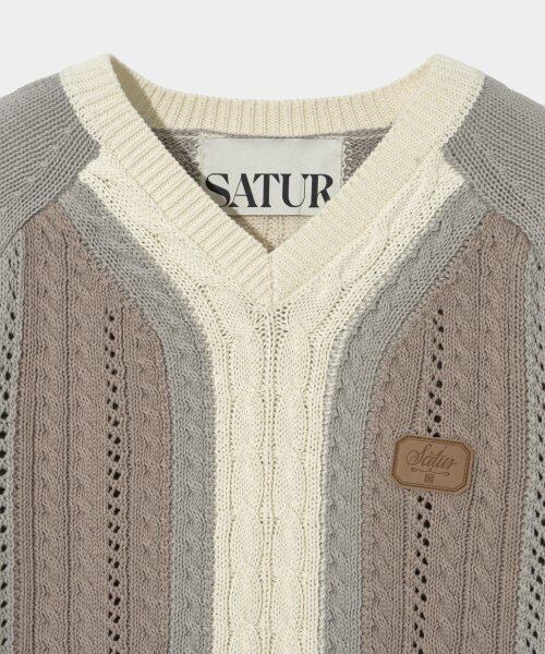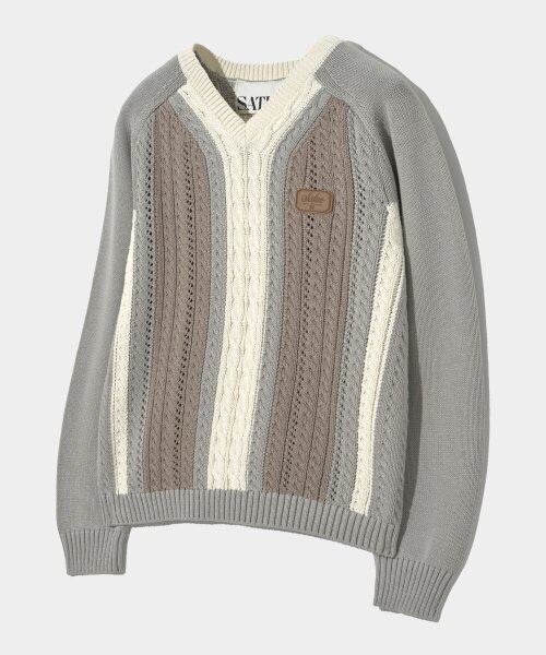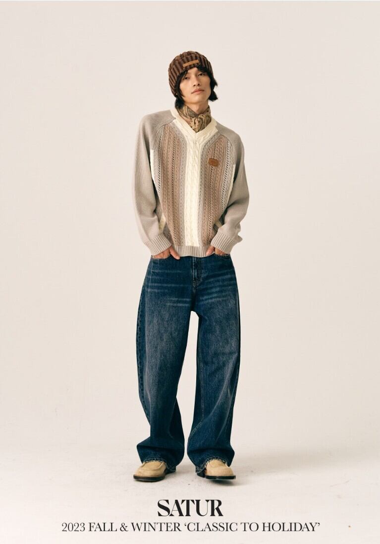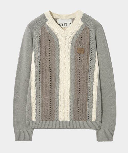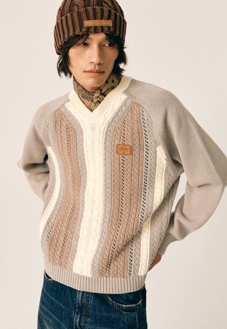 ★ZEROBASEONE ジウン 着用!!【SATUR】Lausanne V-Neck Cable Knit Gray Beige