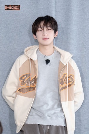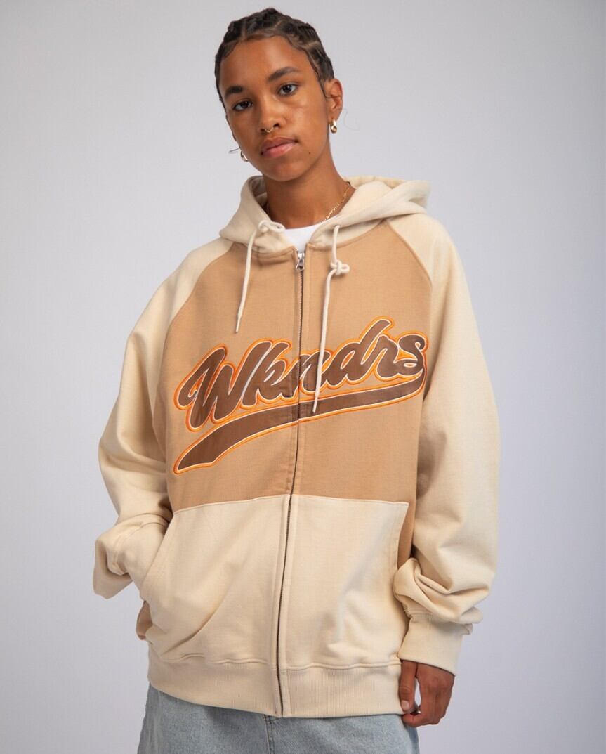 ★ENHYPEN ソヌ 着用!!【WKNDRS】BASEBALL SCRIPT ZIPUP HOODIE (BEIGE)