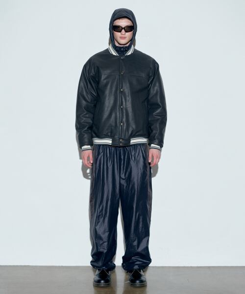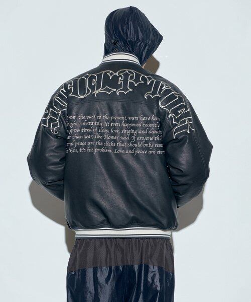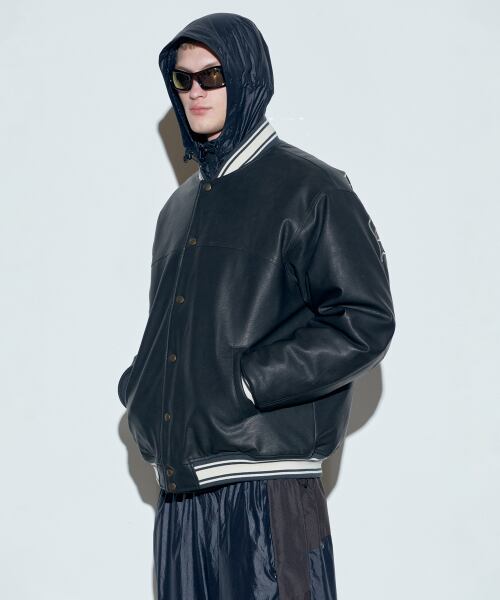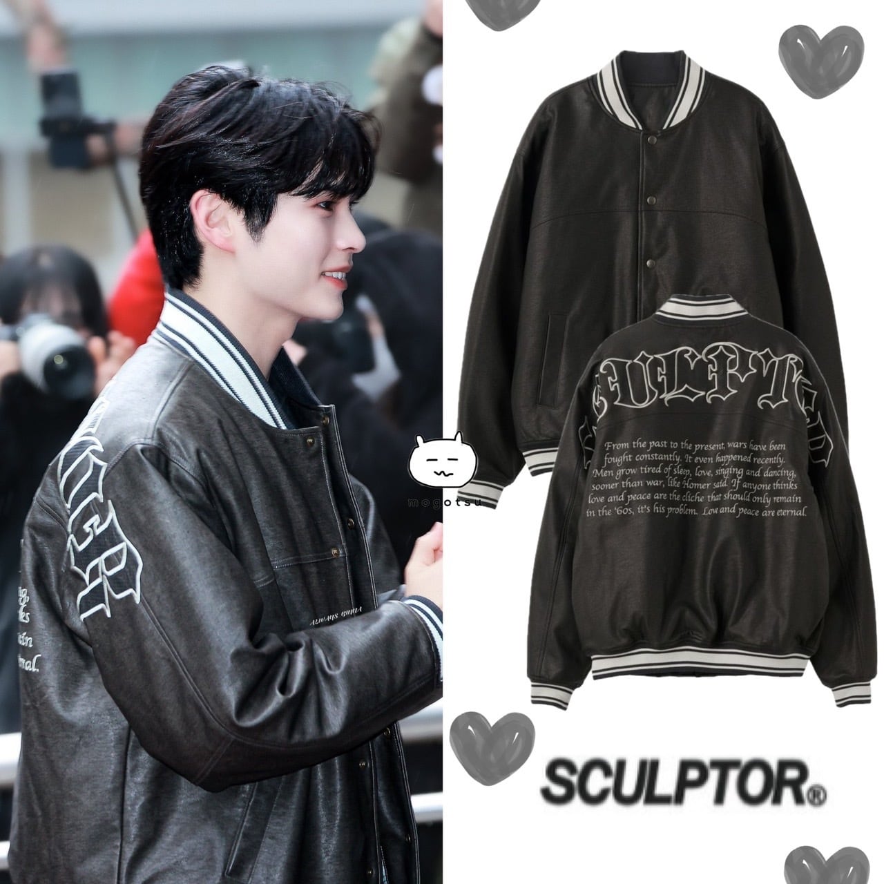 ★ZEROBASEONE ソンハンビン 着用!!【SCULPTOR】Vegan Leather Stadium Jacket Washed Black