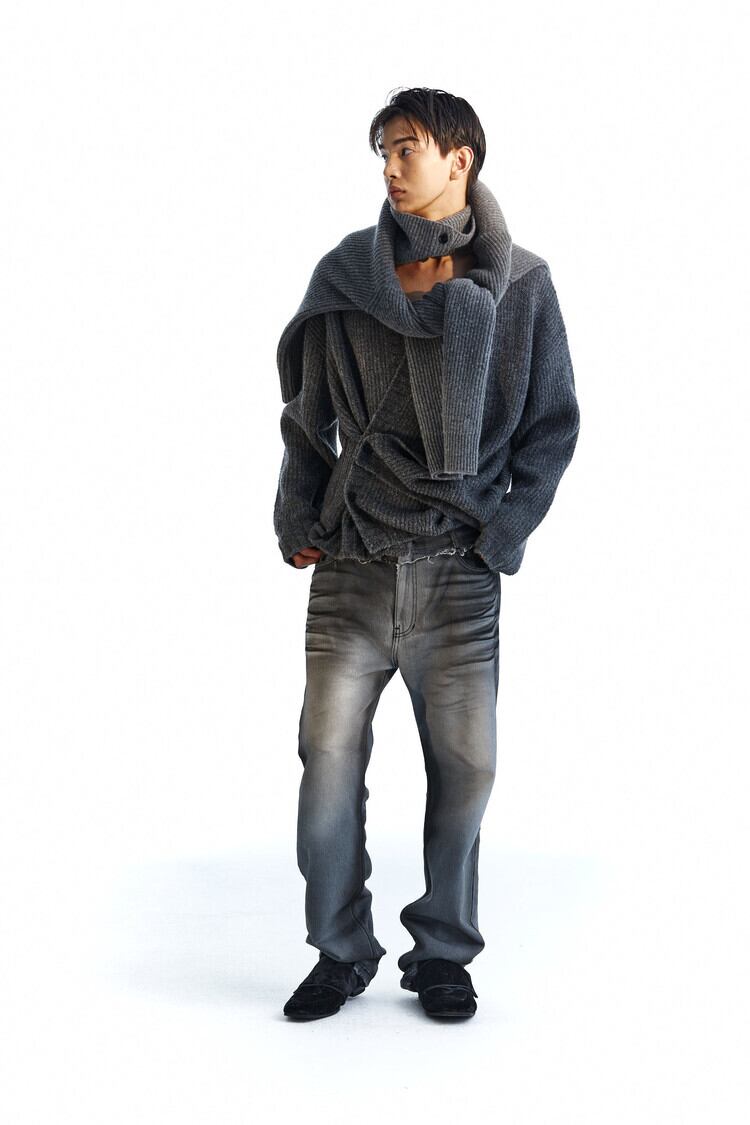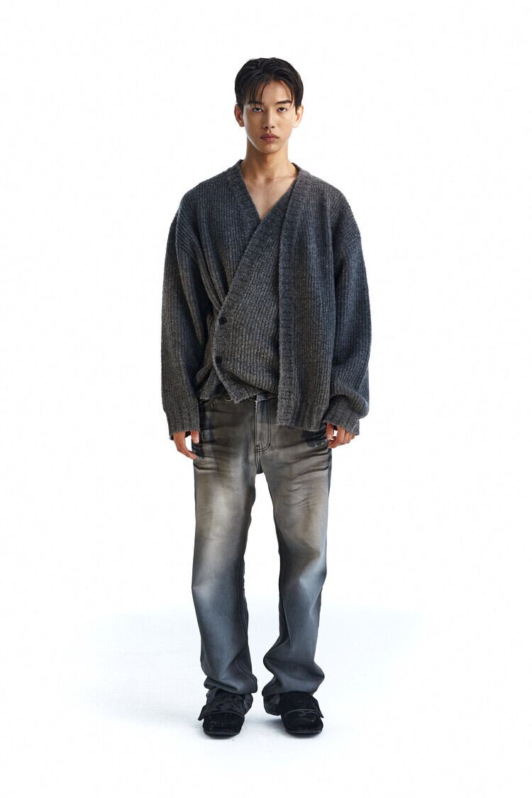 ★RIIZE ソンチャン 着用!!【MOOMYUNG】BOUCLE DOUBLE-LAYERD WRAP CARDIGAN (GREY)