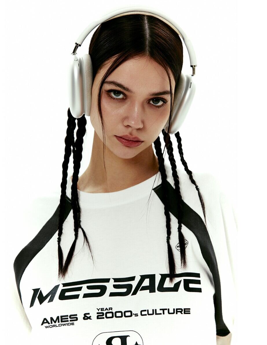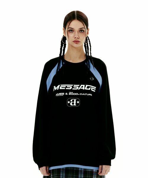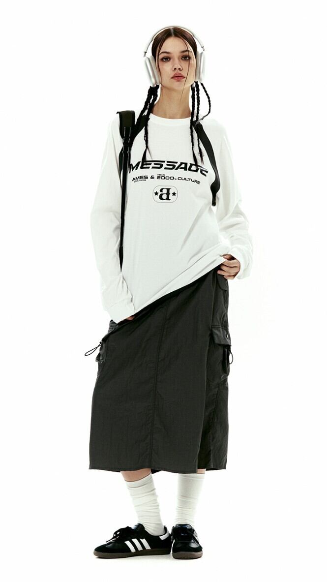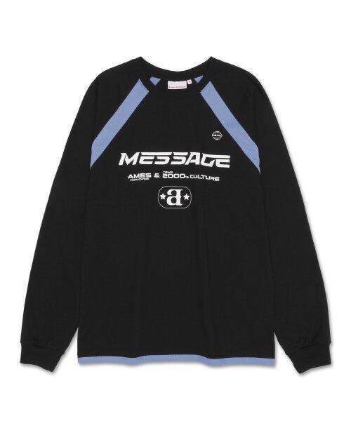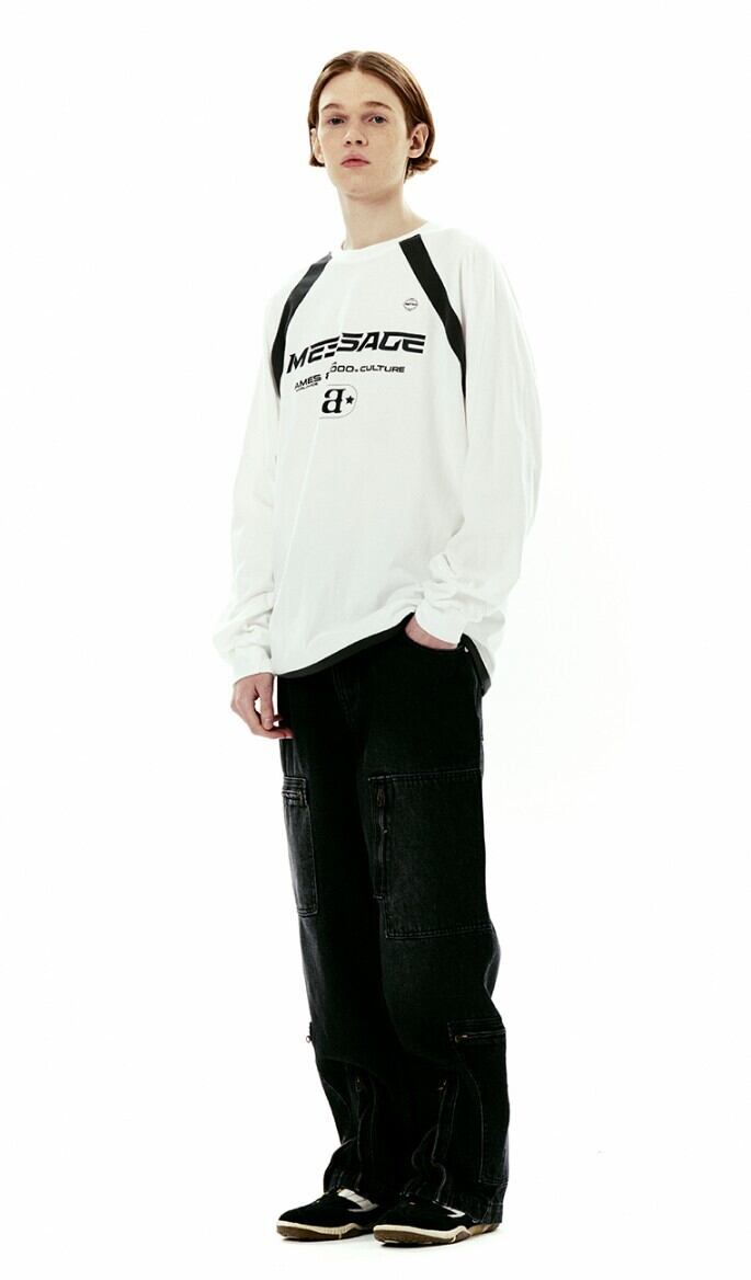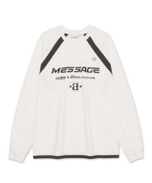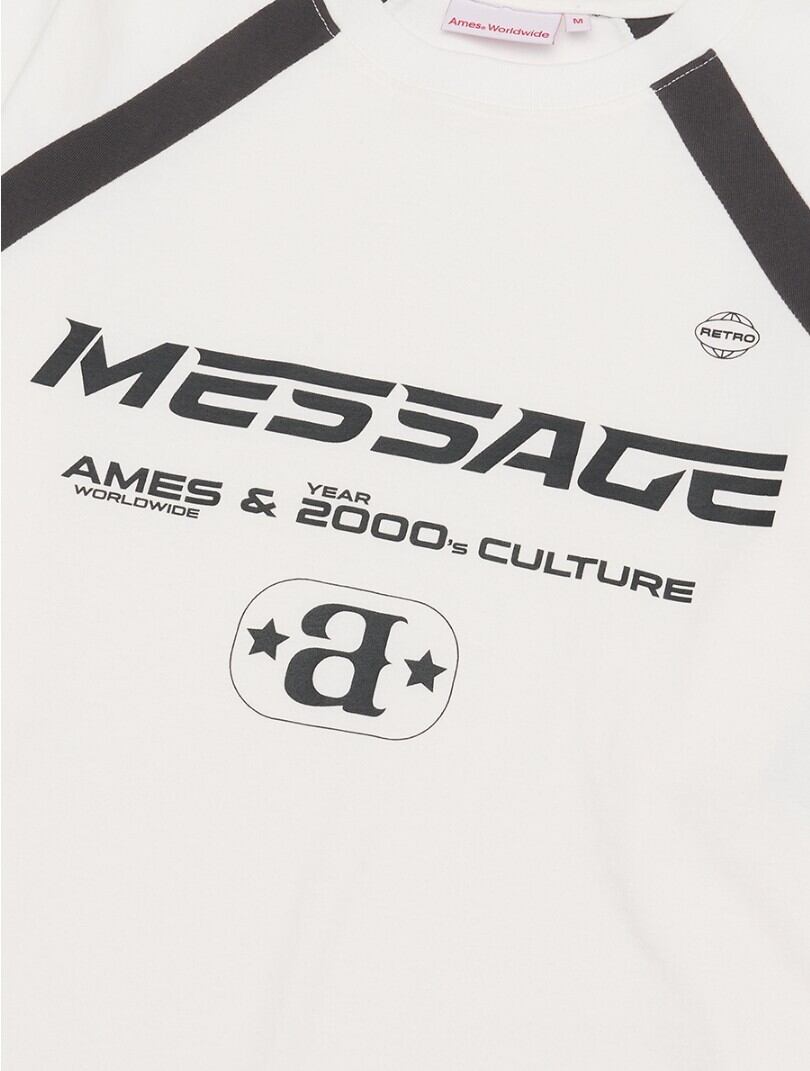 BLACK 2/28予約発送★STAYC セウン 着用!!【Ames Worldwide】MESSAGE LOGO RAGLAN LS TEE WHITE - 2COLOR