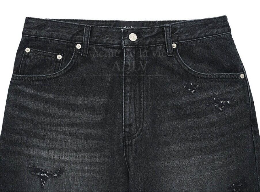 ★SEVENTEEN ジョンハン 着用!!【ADLV】SYMBOL DESTROYED WASHING DENIM PANTS BLACK