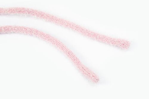 ベーシックなニット原糸ときらめくメタルパール糸を細かく編み