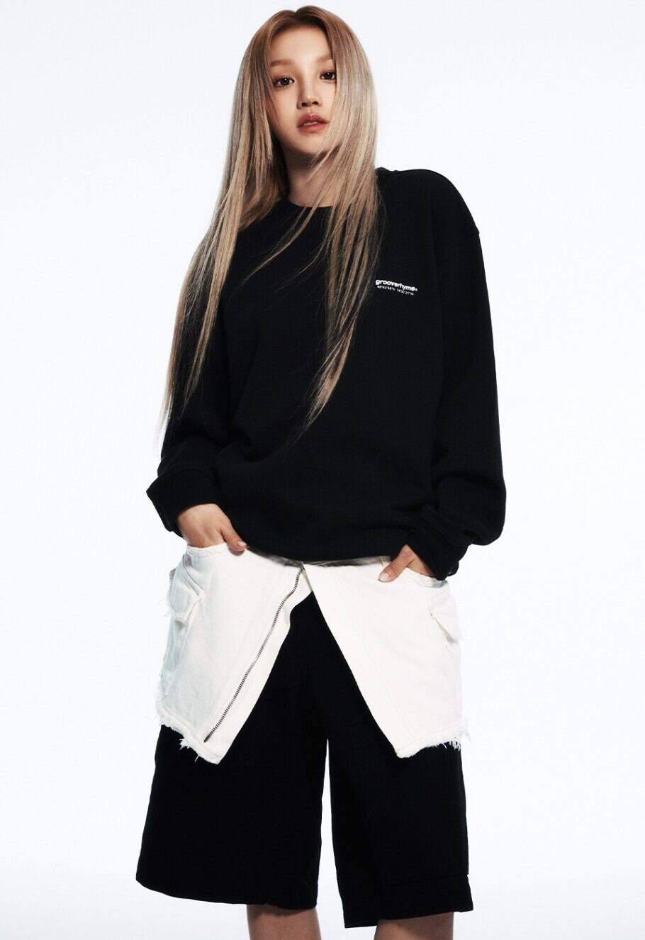★(G)I-DLE ウギ 着用!!【GROOVE RHYME】起毛 NYC LOCATION SWEATSHIRT BLACK