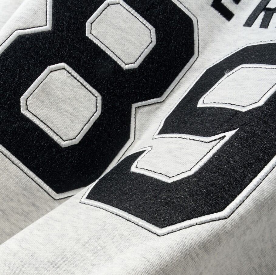 シーズントレンドであるスポーティムードを反映したスポーツユニフォームモチーフのスウェットシャツとフード