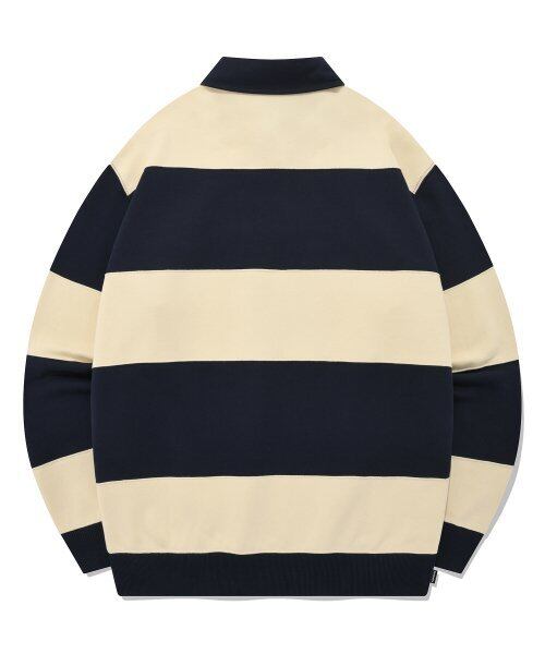 ★ENHYPEN ジェイ 着用!!【COVERNAT】ストライプ ラグビー マンツーマンTシャツ ネイビー