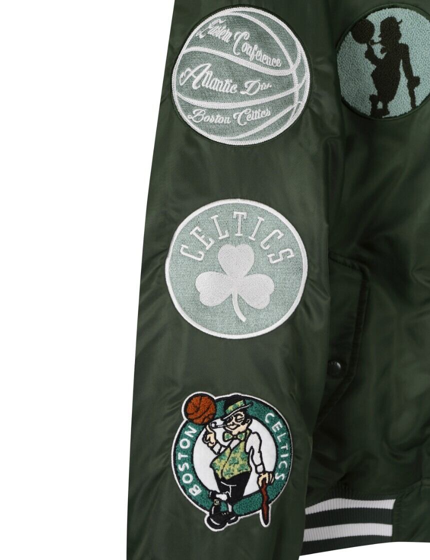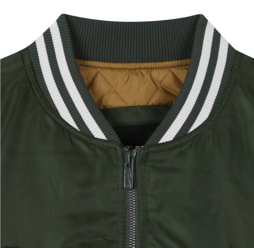 袖ポケットと後ろの板に翼MA-1ディテールとカラームード別にブークル、刺繍、フェルト技法のバーシティグラフィックとリップにポイントピンストライプがポイント