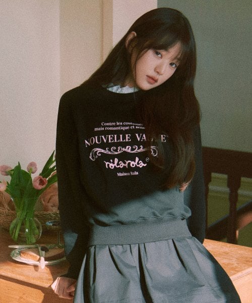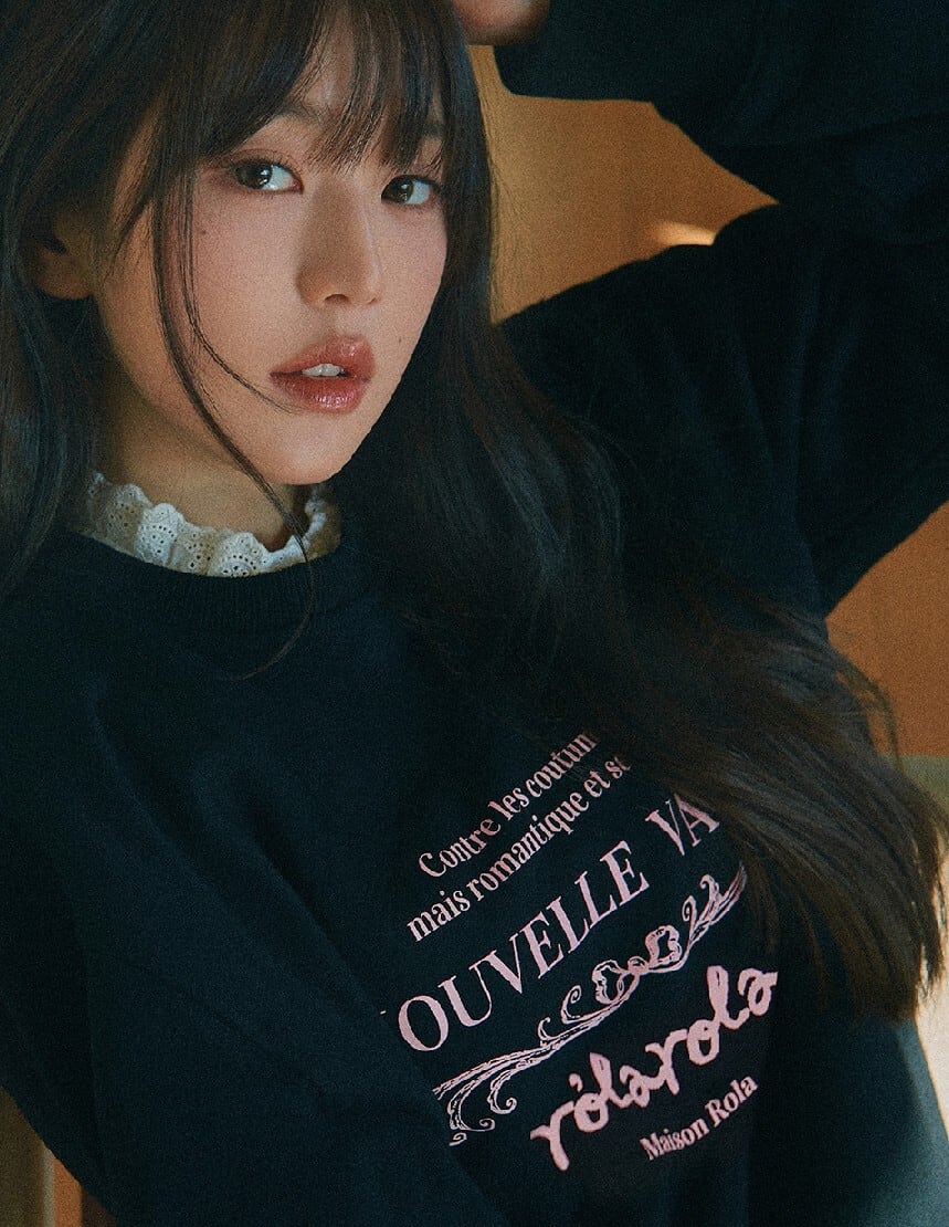 ★IVE ウォニョン X rolarola コラボ!!【rolarola】VINTAGE NOUVELLE LOGO SWEATSHIRT BLACK