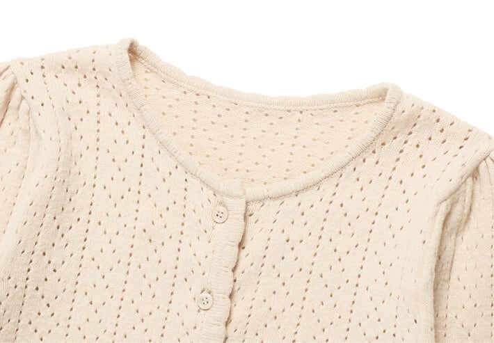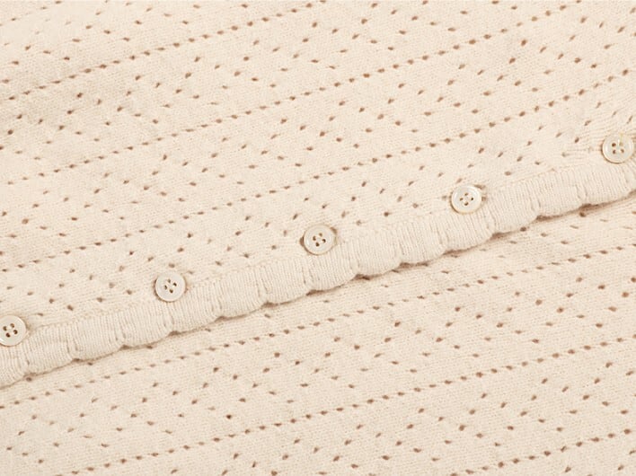 ネックラインと先端の小さなスカラップ組織でポイントを与え、