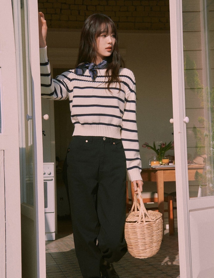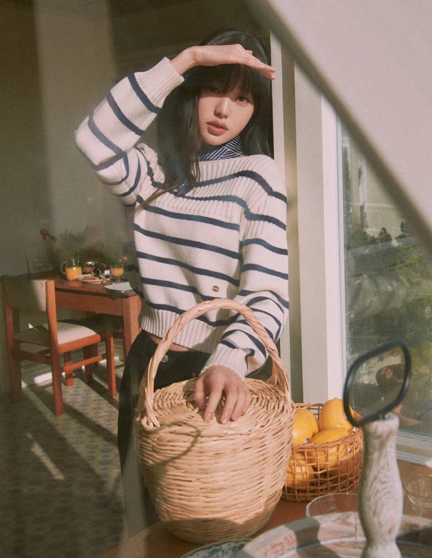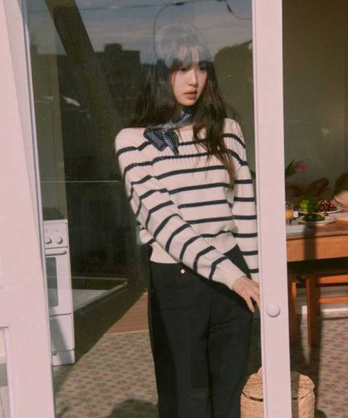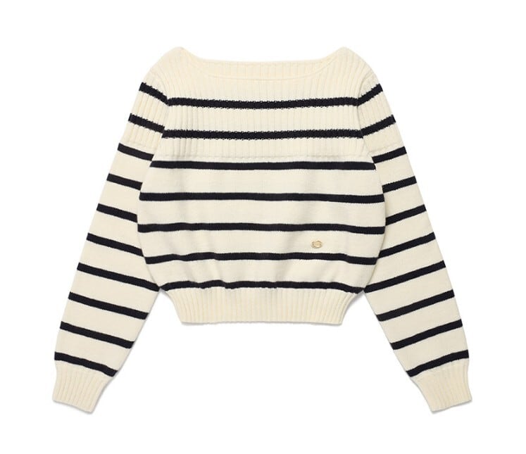 ★IVE ウォニョン X rolarola コラボ!!【rolarola】STRIPE BOAT NECK KNIT WH+NV