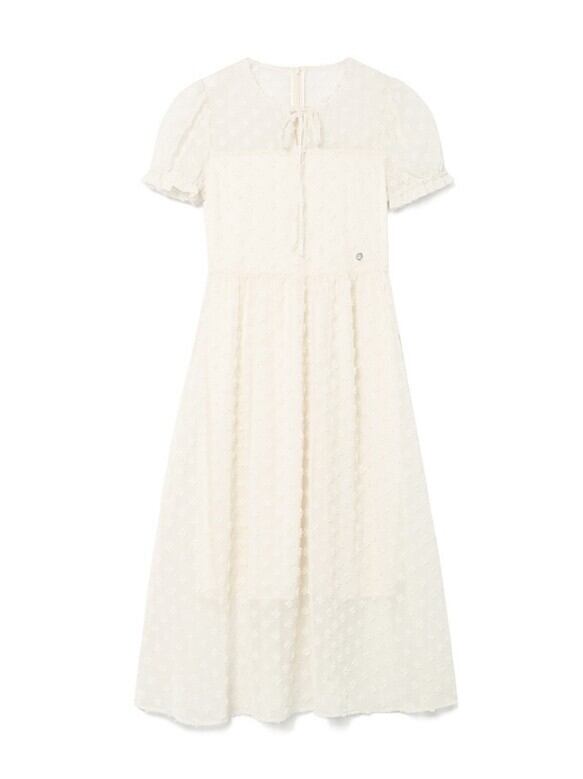 立体的なフラワーシフォンの生地が愛らしいロングワンピースです。