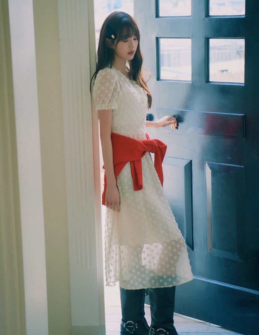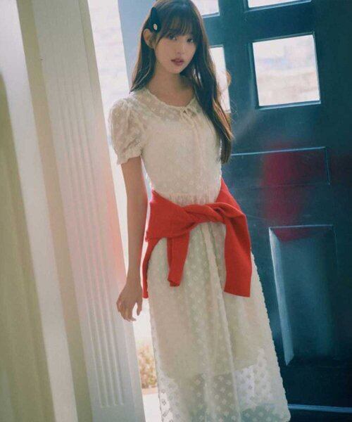 ★IVE ウォニョン X rolarola コラボ!!【rolarola】FLOWER SHIRRING ONEPIECE IVORY