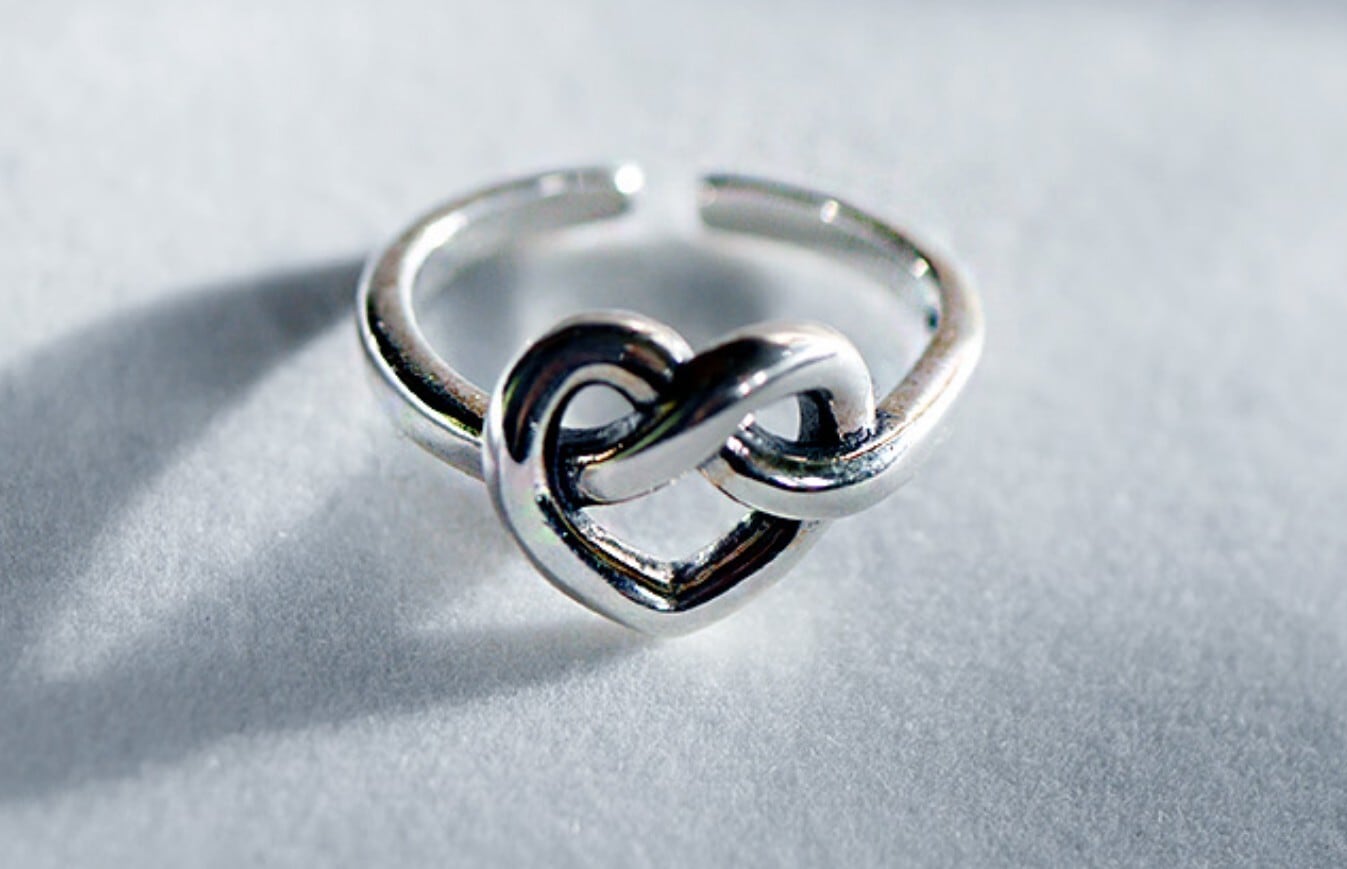 プレッツェルの形にねじった愛らしい純銀の指輪です。