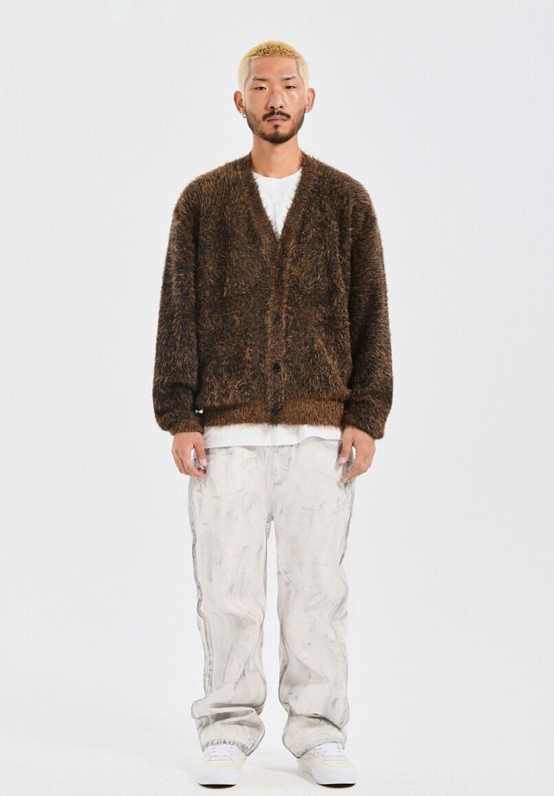 ヘアーな素材感が引き立つルーズフィットシルエックカーディガンで、柔らかいタッチ感の