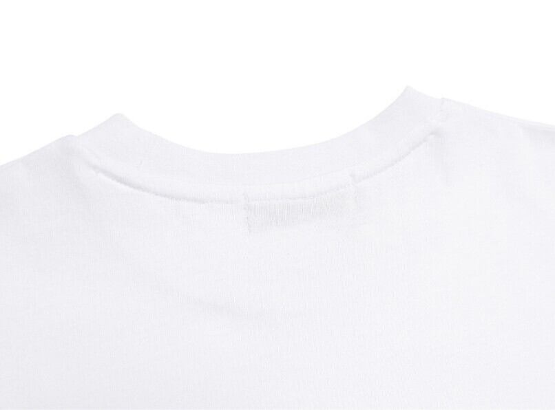 · 生地のダンブル加工とバックネックテープ、シムテープ縫製で洗濯後の縮み防止