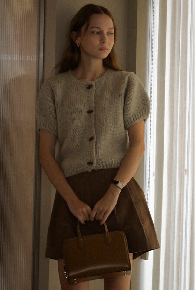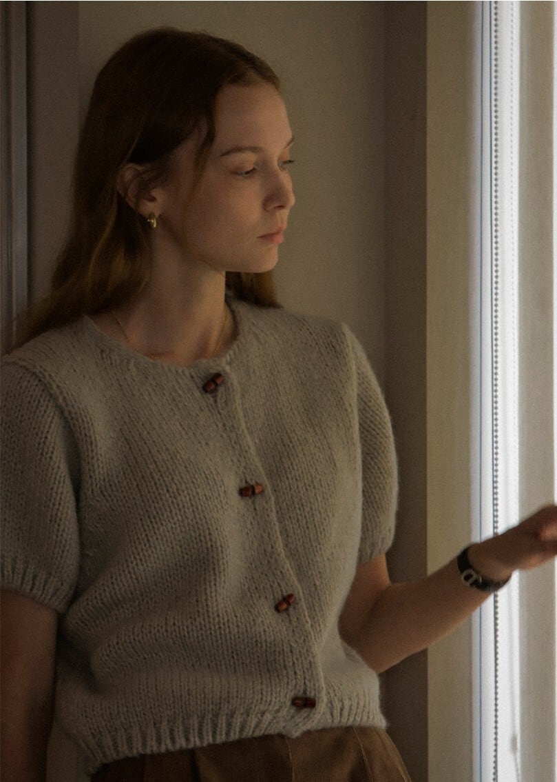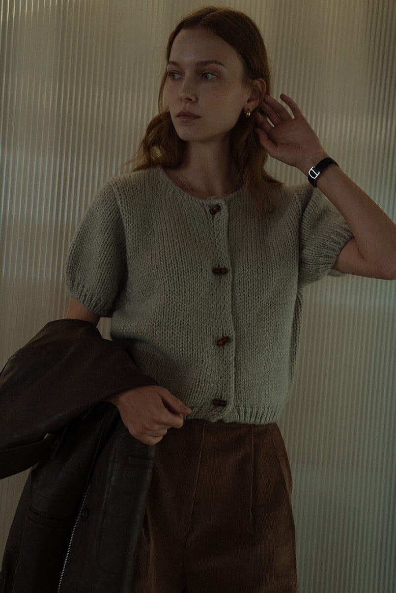 ★TWICE ダヒョン 着用!!【KNOWN BETTER】Toggle alpaca half sleeve cardigan_Gray
