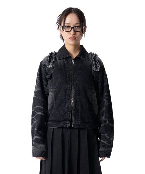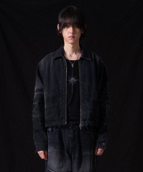 ★ATEEZ ウヨン 着用!!【IUGAMAKARAS】Wrinkle Washed Denim Jacket (Black)