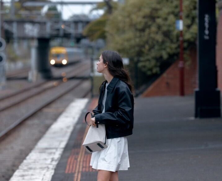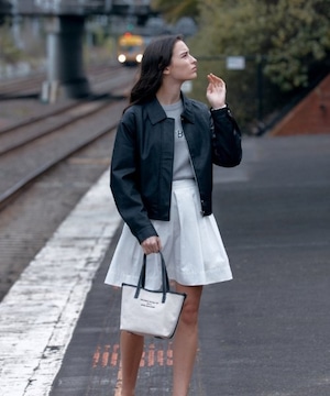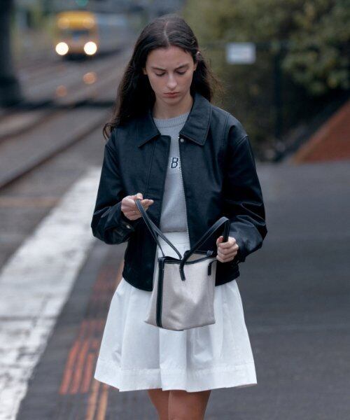 フロントの小さなヒドゥンスナップですっきりとデザインされています。