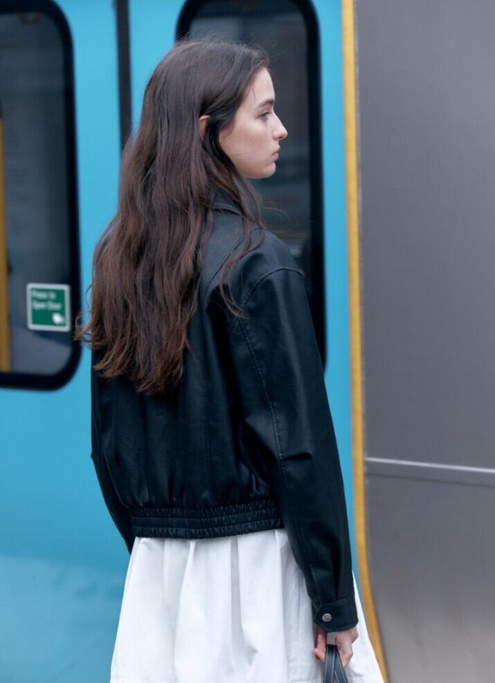 ★KISS OF LIFE ハヌル 着用!!【DEPOUND】crop leather jacket - black