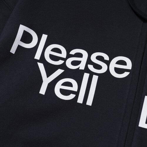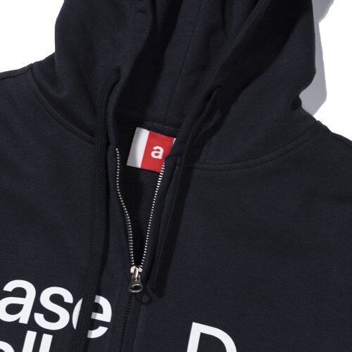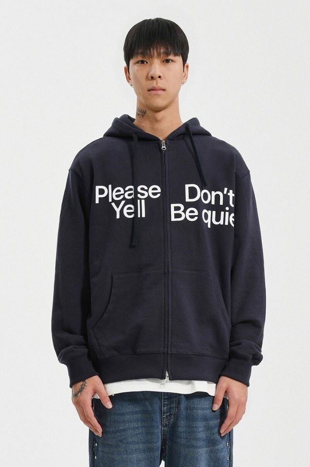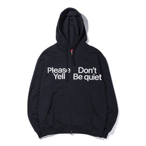 留めによって二重的なキッチュな文句がユニークなジップアップです。