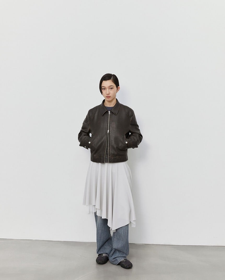 ★IVE ウォニョン 着用!!【BURMULA】WASHING LEATHER BOMBER JACKET (BROWN)