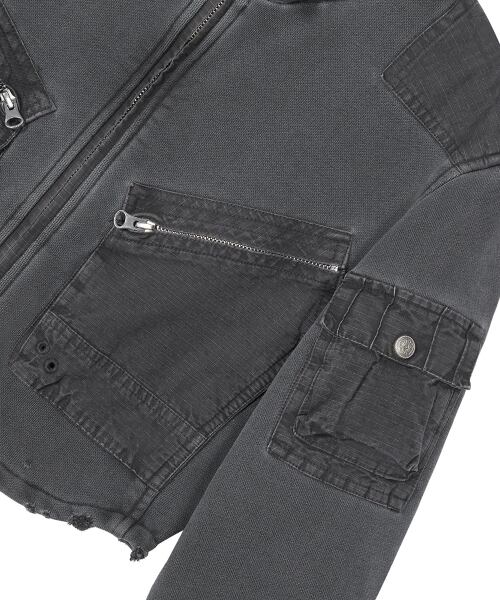 Cotton Zip-up Cargo Jacket Charcoal