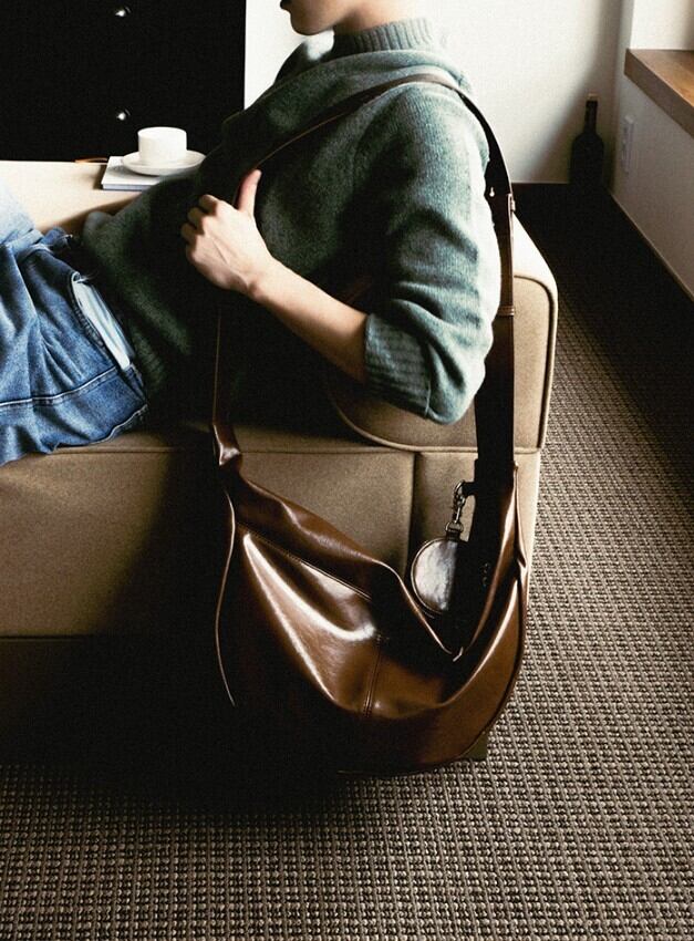 ★ENHYPEN ヒスン / ATEEZ ユンホ 着用!!【MIM THE WARDROBE】MONTA CRACK LEATHER MESSENGER BAG_BROWN