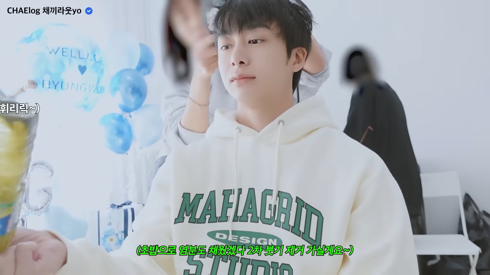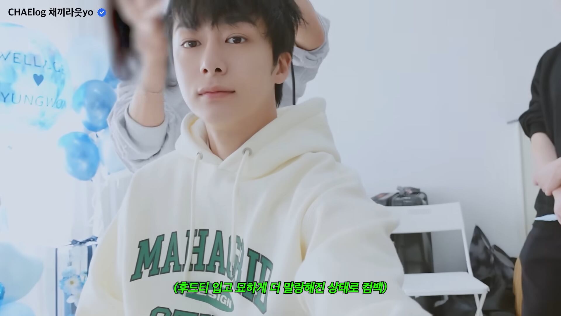 ★MONSTA X ヒョンウォン 着用!!【MAHAGRID】COLLEGE LOGO HOODIE CREAM
