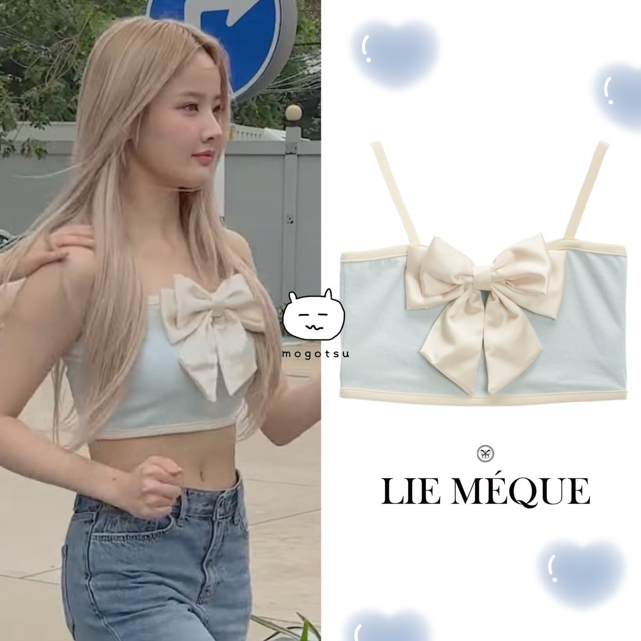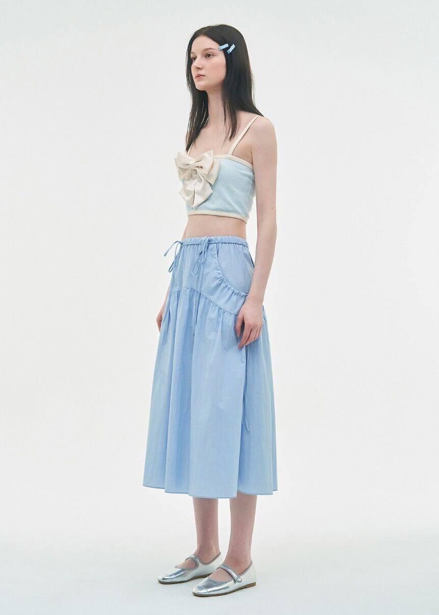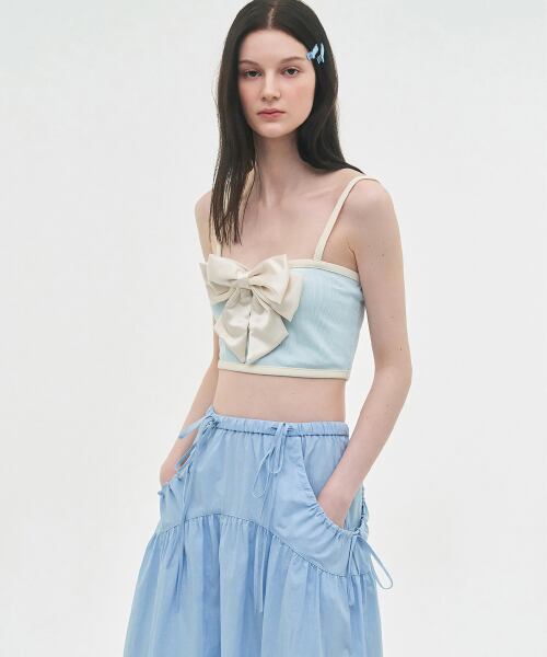 ★KISS OF LIFE ベル 着用!!【LIE MEQUE】Silky Ribbon Sleeveless Top Sky Blue