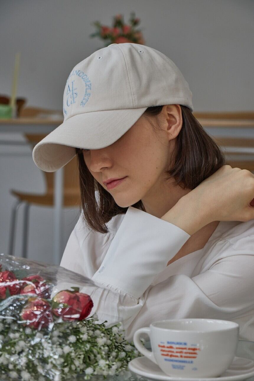 ★IVE ガウル 着用!!【ALLINCOMPLETE】Round Logo Ball Cap (Cream Beige)