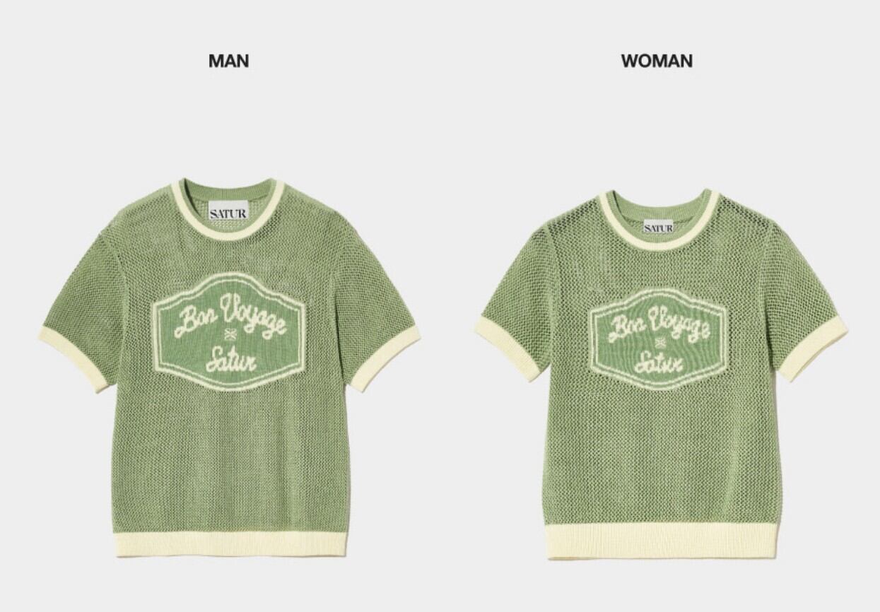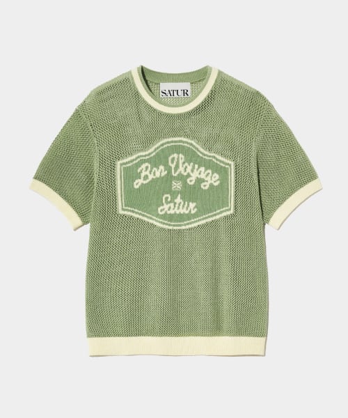 ★TXT ボムギュ 着用!!【SATUR】Bon Voyage Artwork Logo Crew Neck Half Knit Celadon Mint