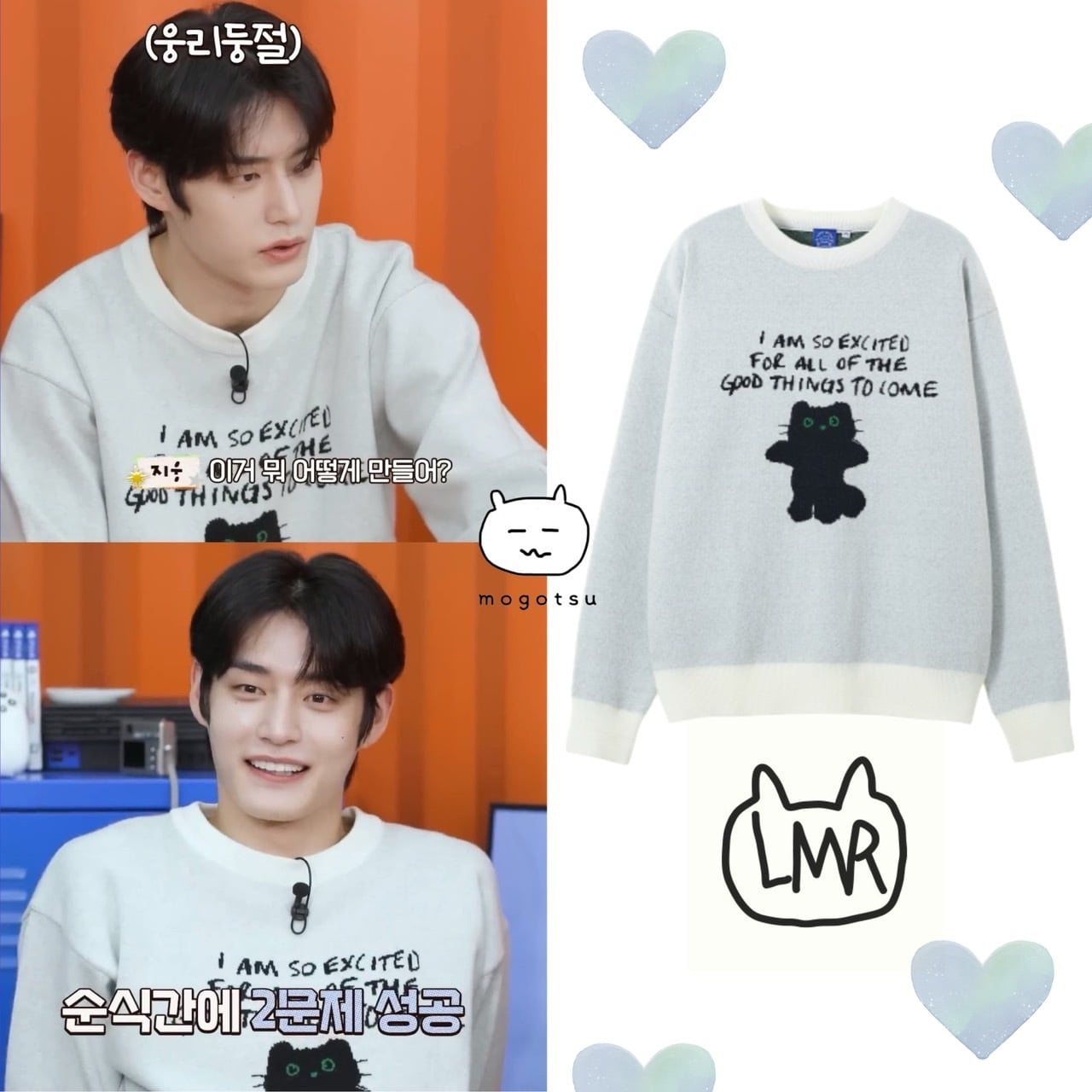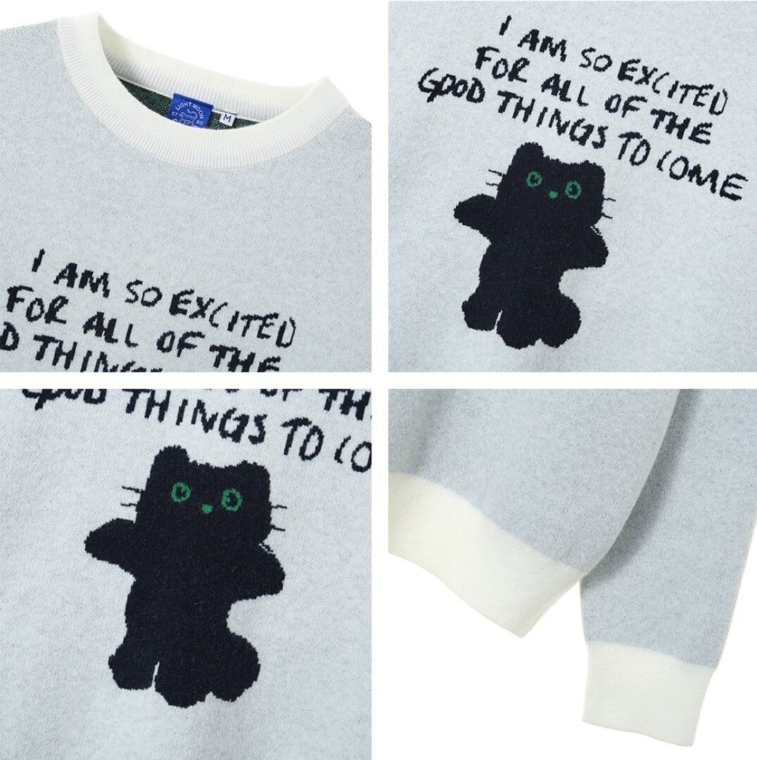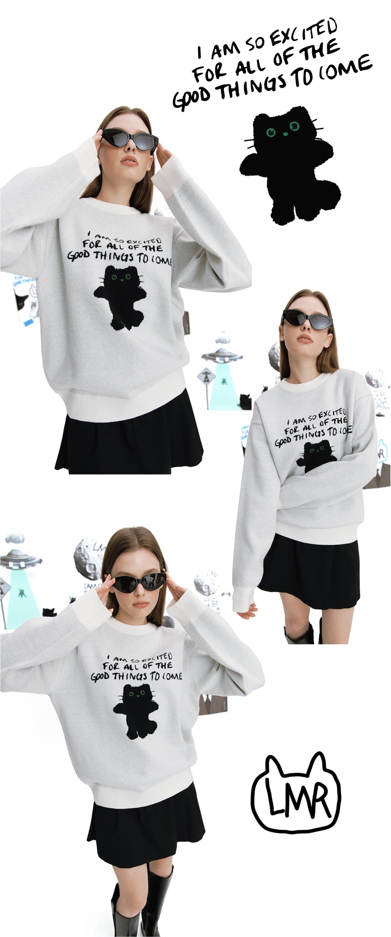 11/13までセール!★ZEROBASEONE ジウン 着用!!【LMR】CAT CHARACTER LETTERING JACQUARD KNIT PULLOVER